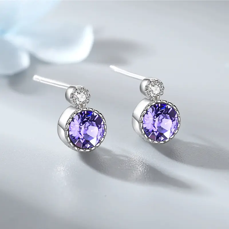 Purple Teardrop Pendant Collarbone Necklace | Women's Fashion Versatile Necklace, Light Luxury Office Accessory, Crystal Necklace