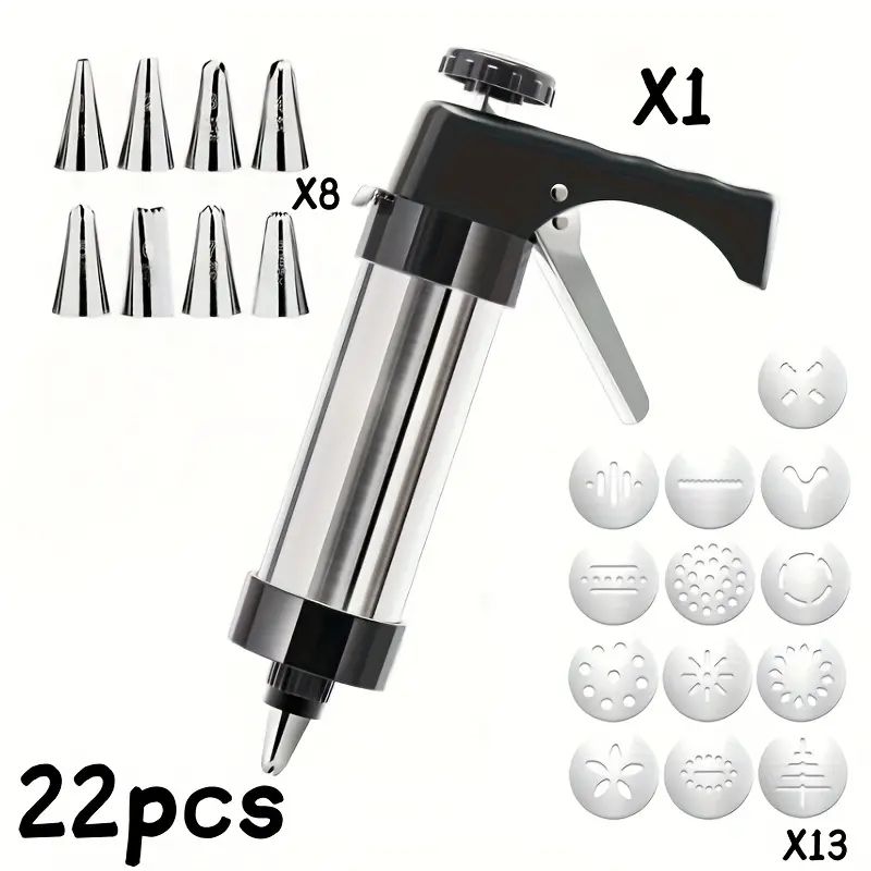22Pcs cookie press extruder, cream piping gun, piping nozzle for molten beans, baking tools, including 13pcs pattern disc + 8pcs piping nozzle + 1pc press gun, essential kitchen tools for Christmas and Valentine's Day baking, no electricity required,