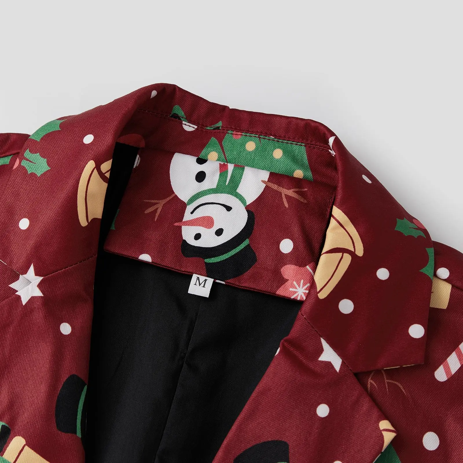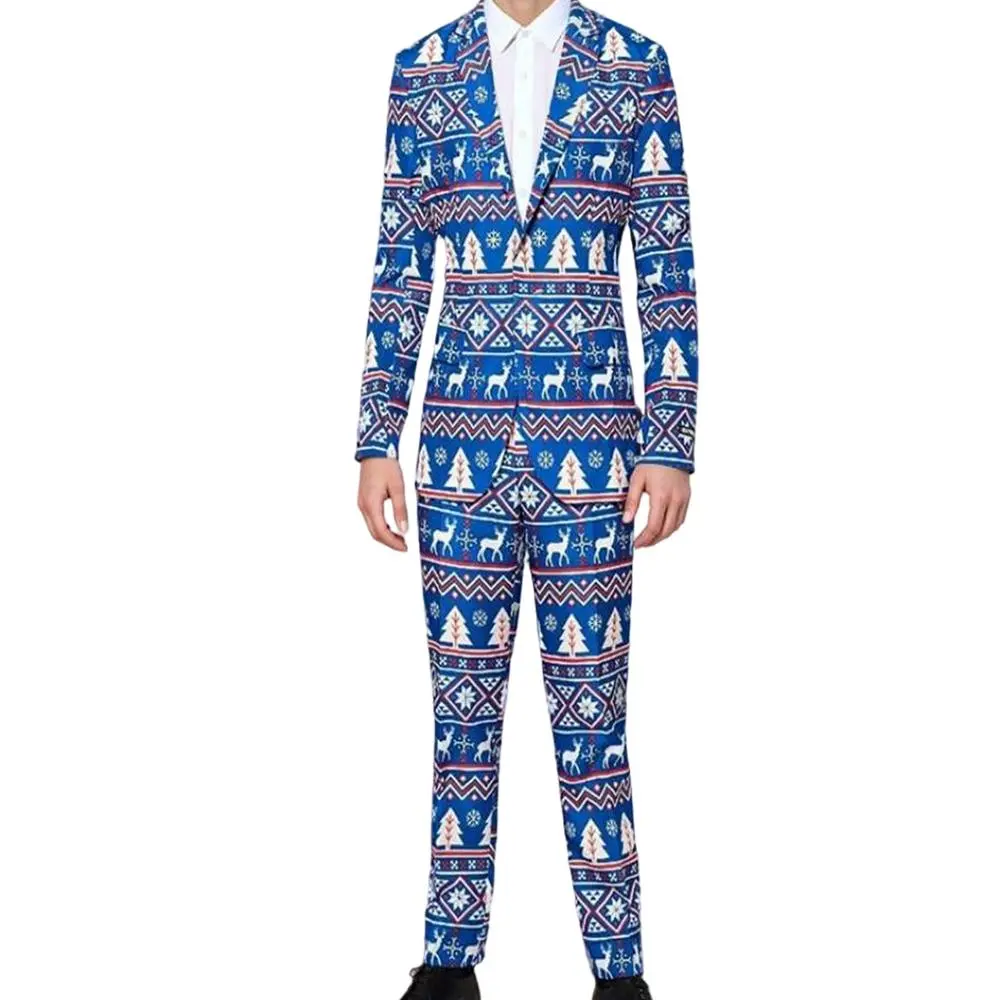 2025 Fashion Men's Christmas Suits Print Lapel V Neck Long Sleeve Blazer Jacket Pants and Vest 3 Pcs Sets