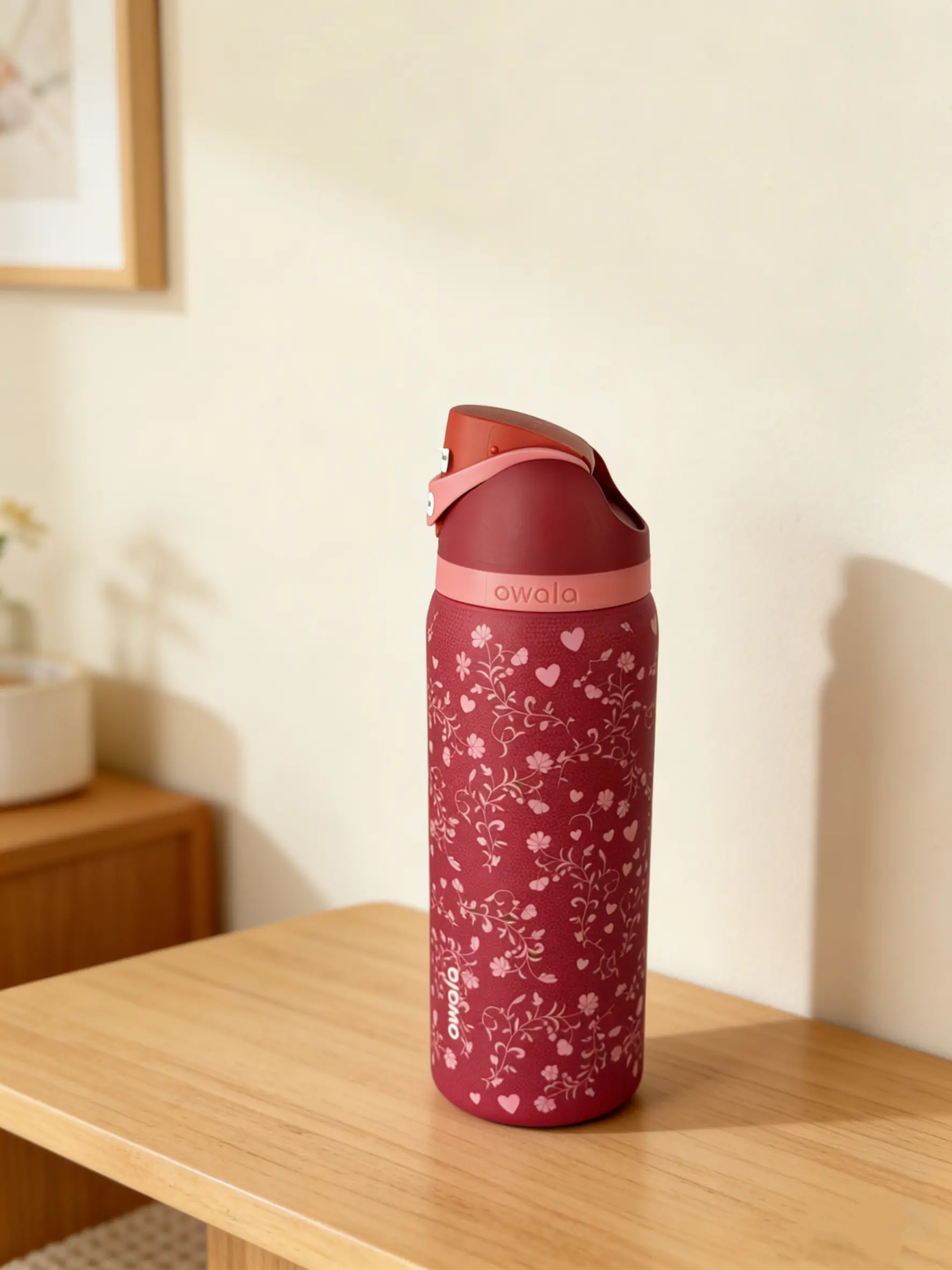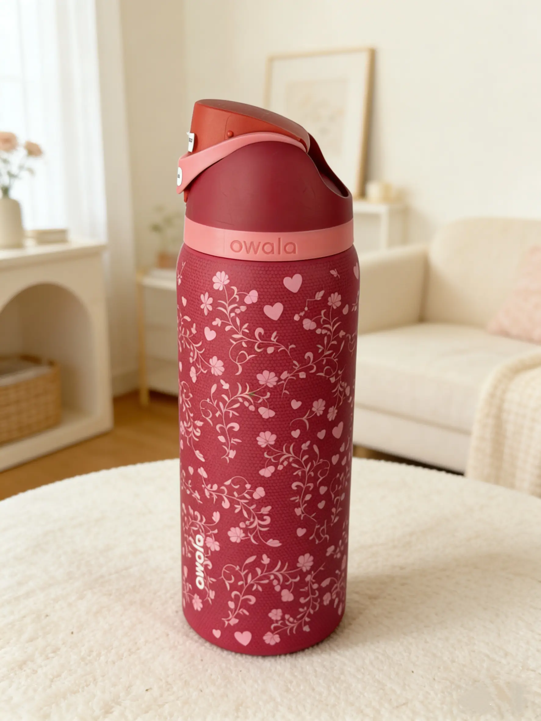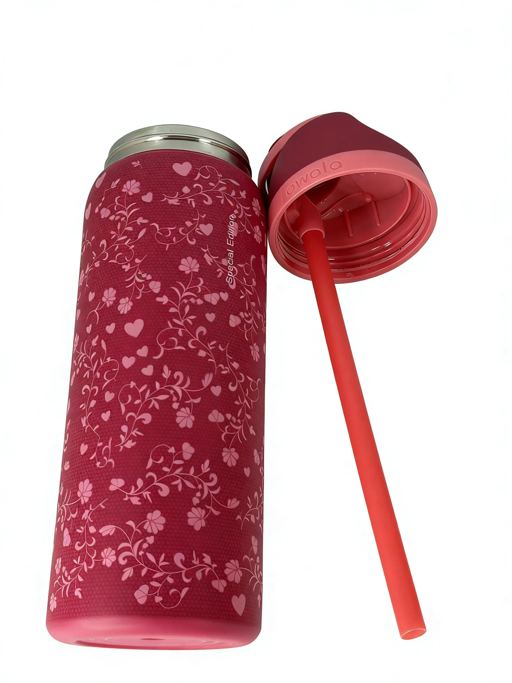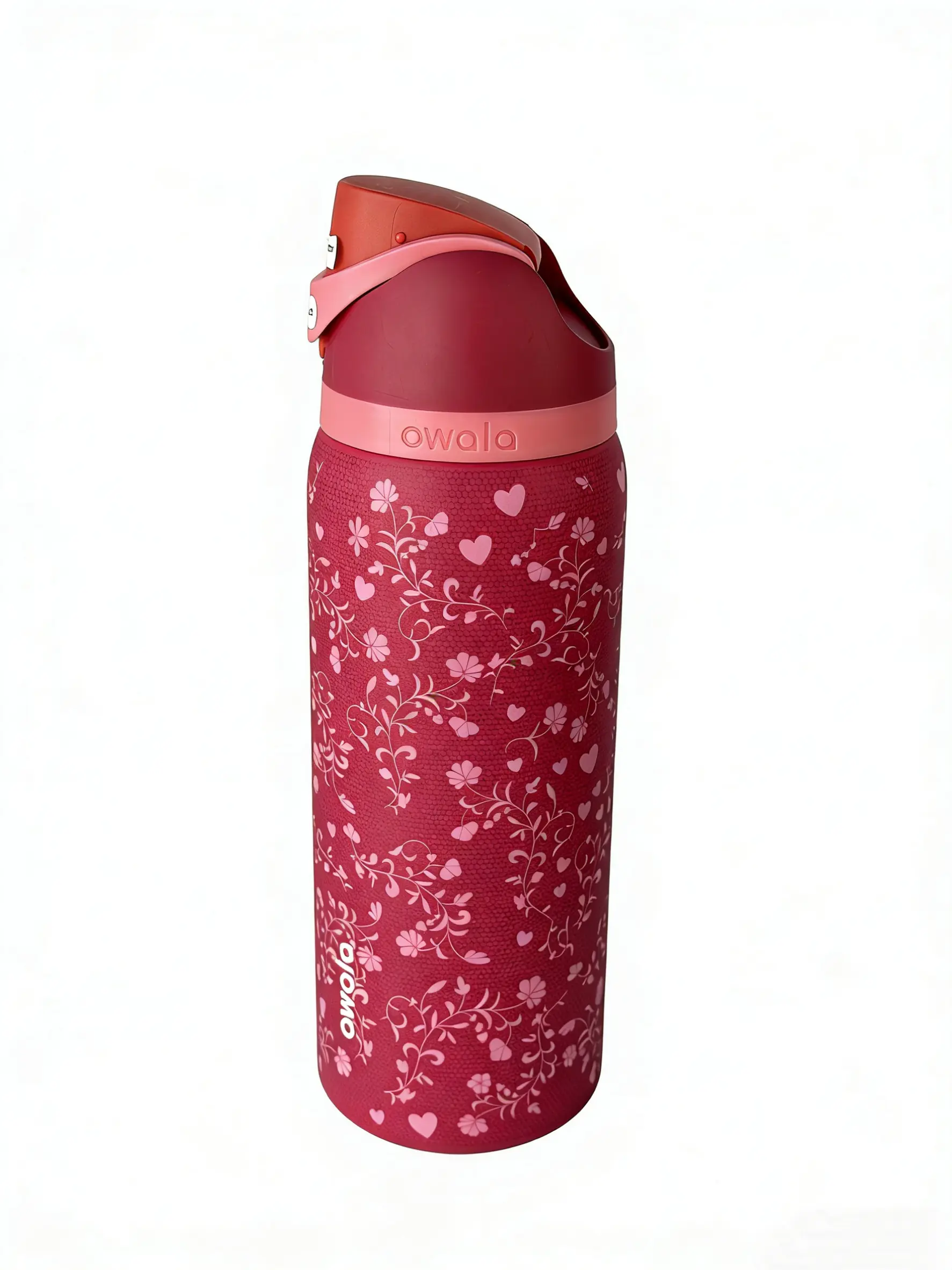 Discover the Owala FreeSip 32oz Insulated Water Bottle in a stunning Floral Heart Red design. This special edition tumbler keeps your drinks cold for 24 hours, ensuring freshness throughout the day. Perfect for portable drinkware, it's leak-proof and made from stainless steel. Ideal for flasks and bottled mugs, it's a versatile choice for everyday use.