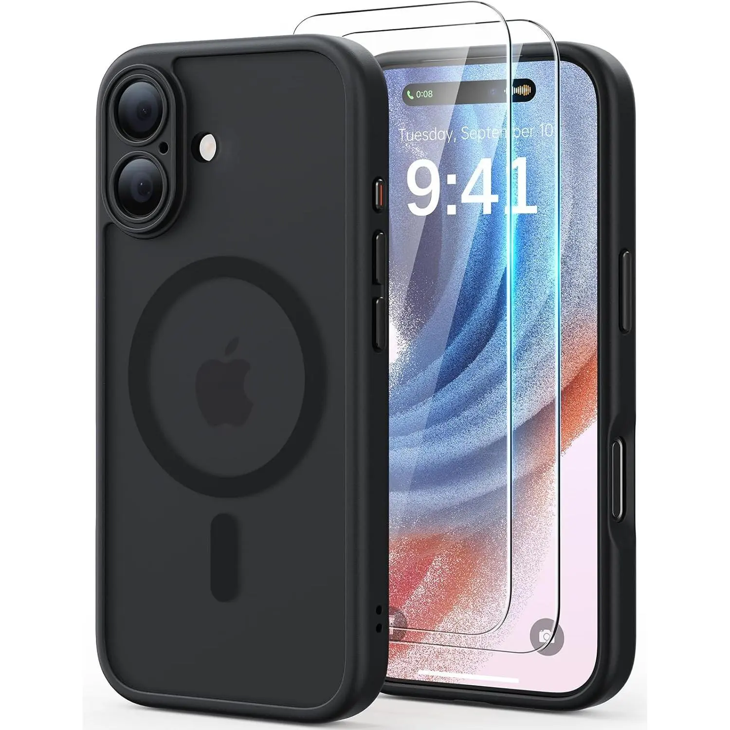 for iPhone Air Case with 2 Pack Screen Protectors, Compatible with MagSafe, Full Camera Protection, Slim Translucent Matte Magnetic Phone Cover for iPhone 17 Air, Black