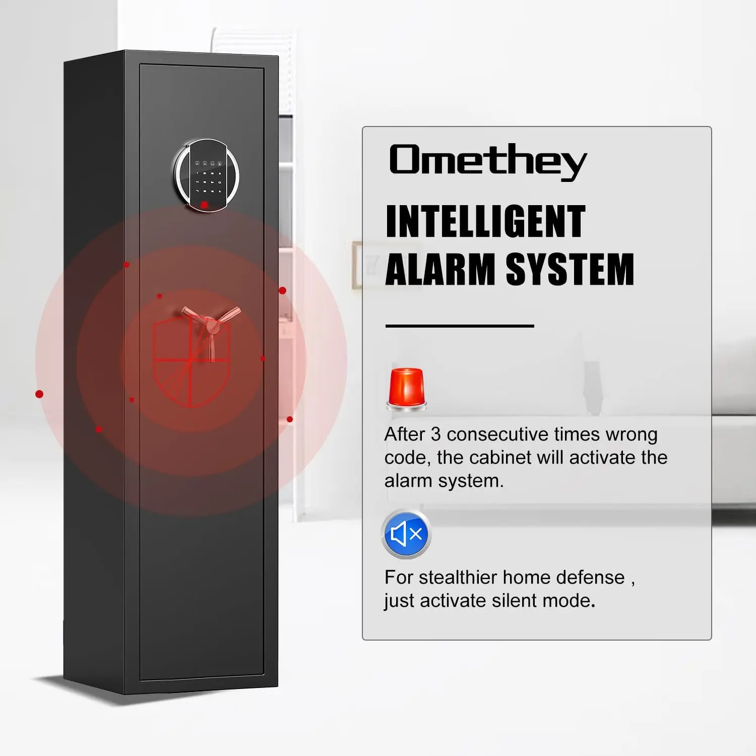 ·【Dual Alarm System and Silent Mode】The gun safe are equipped with a dual alarm system. The vibration alarm is triggered by shaking or moving the gun cabinets, the input error alarm will be activated after 3 wrong password attempts. The buzzer will sound for 1 minute when the alarm is activated, which can be heard throughout the house. To avoid being discovered by thieves or disturbing your children's sleep, it's a great to turn on the gunsafe's silent mode.