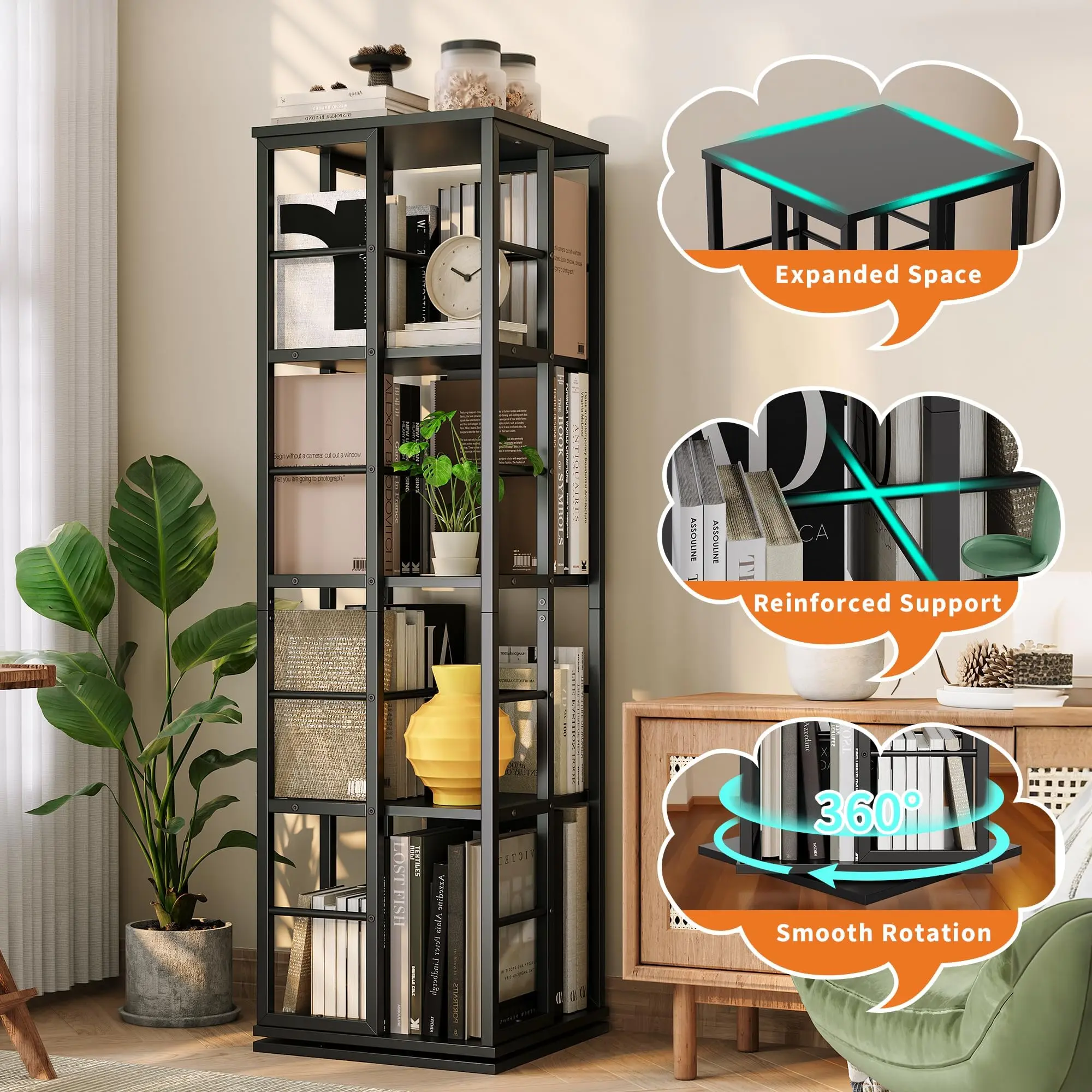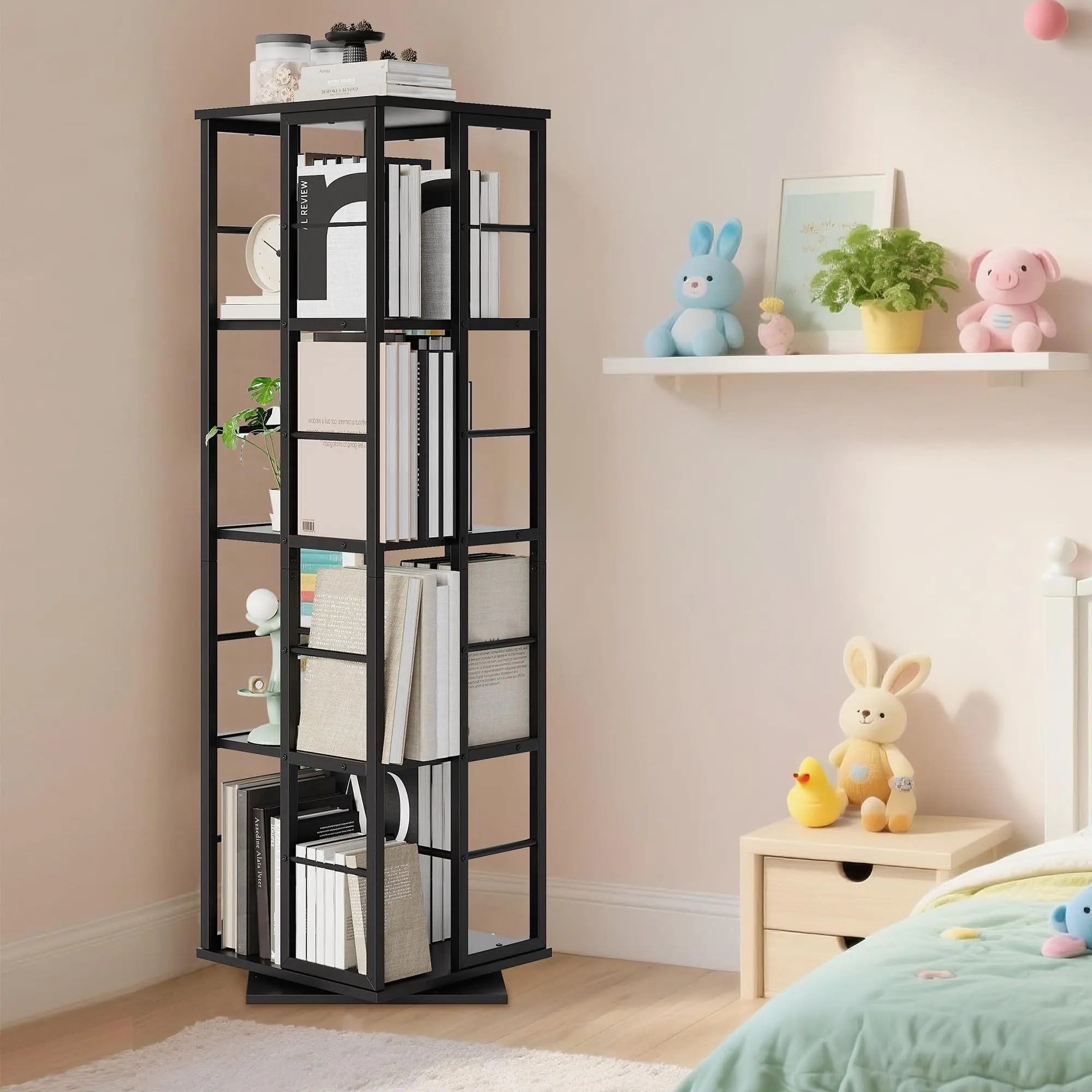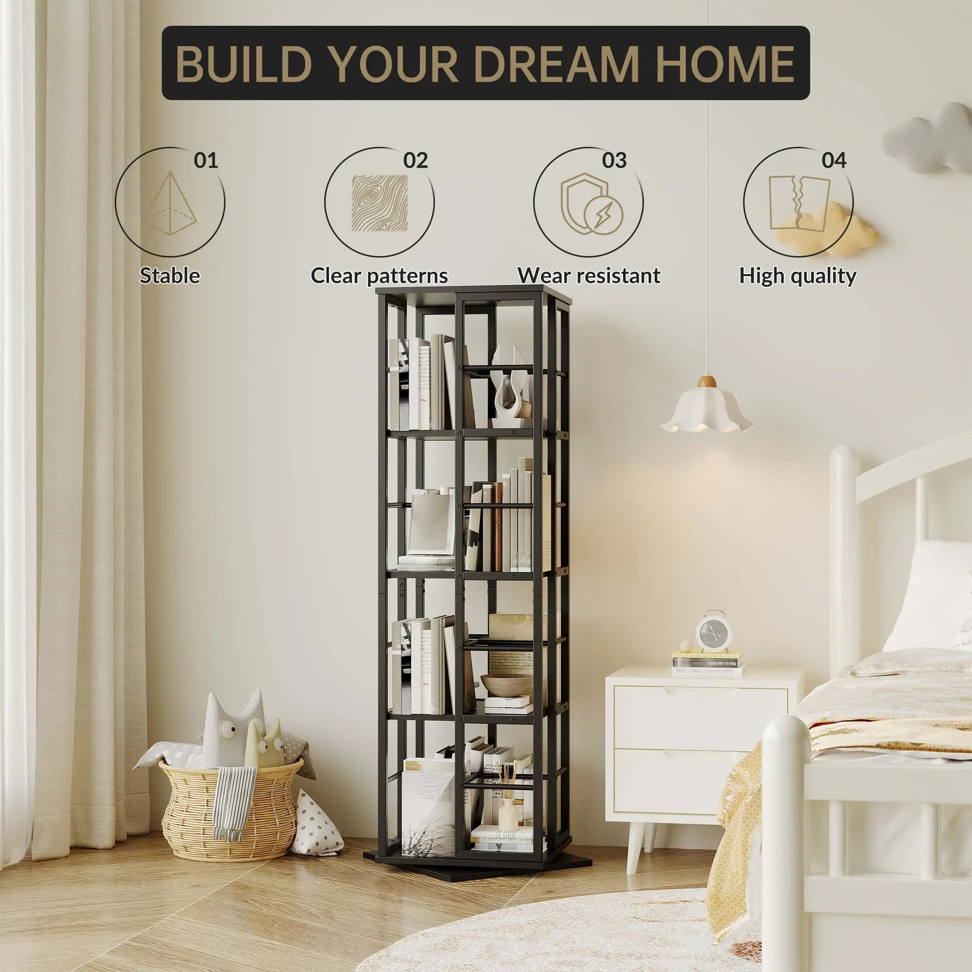 · 【Smooth 360° Rotating Display for Easy Access】This 360 rotating bookshelf transforms unused corners into interactive, organized spaces. With a gentle spin, you can easily access all your items—say goodbye to the hassle of rummaging. Whether it's books, decorative plants, or precious collectibles, this spinning bookcase turns clutter into an elegant showcase that becomes a highlight of your home.