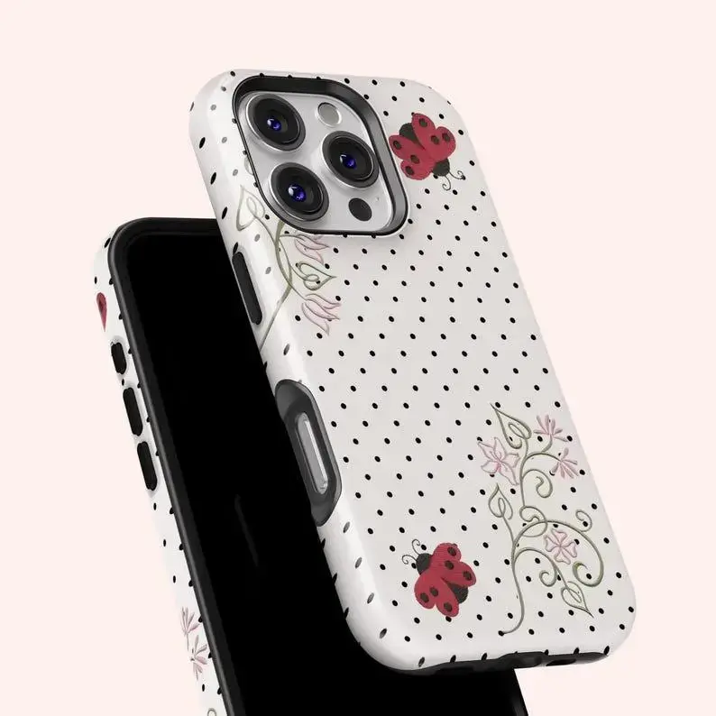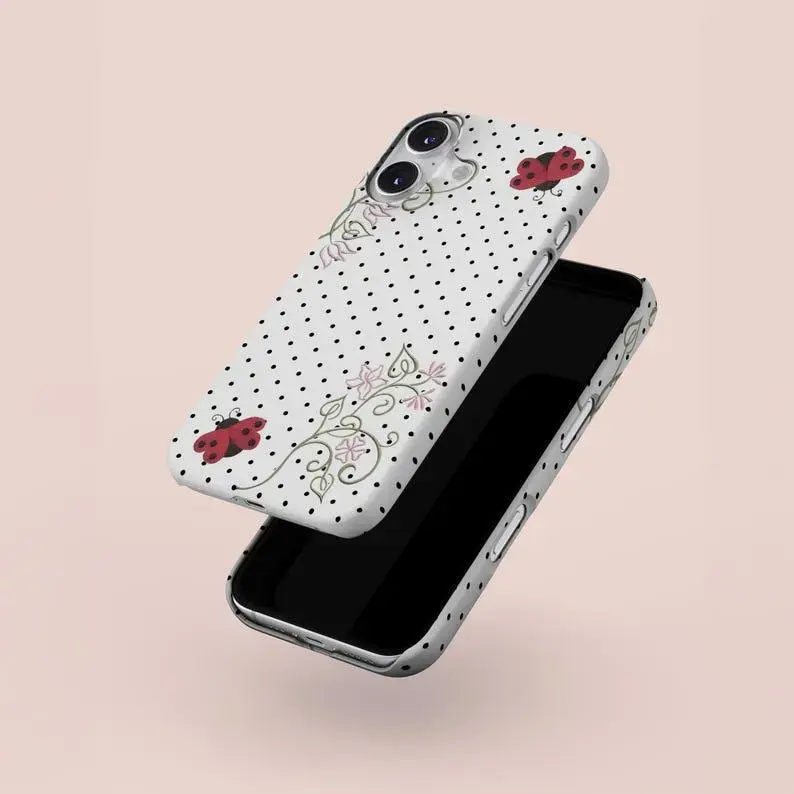 Polka Dot Ladybug Phone Case Cute Y2K Art Kawaii Floral Coquette Case for iPhone 17 16 15 14 13 12 11 Air Promax Plus
