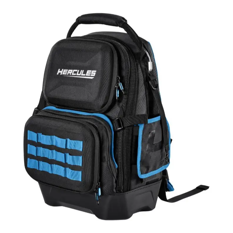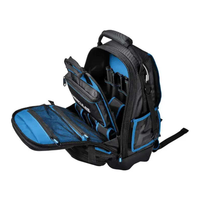 The HERCULES 42-pocket Extreme-Duty Jobsite Backpack is constructed from supertough, puncture and abrasion resistant fabric for maximum strength and durability. 42 pockets keep pliers, snips, wrenches, screwdrivers, and other hand tools easily accessible. This backpack features a hard molded bottom that protects tools from water and impact. The padded shoulder straps let you take a load off during transport and the carrying handle is reinforced with an extreme-duty braided cable that won't stretch or tear.