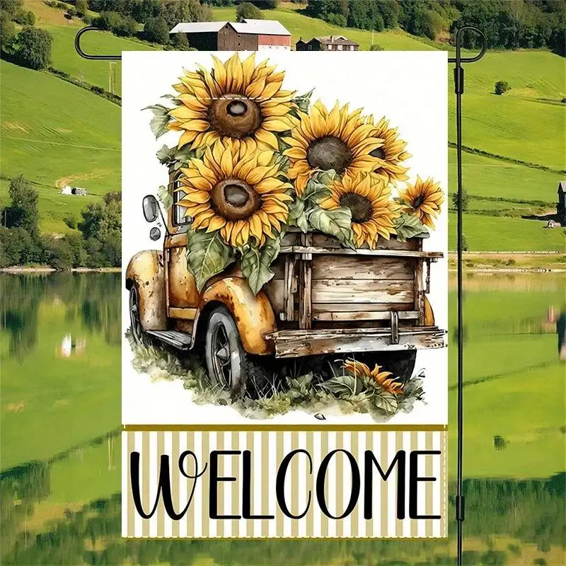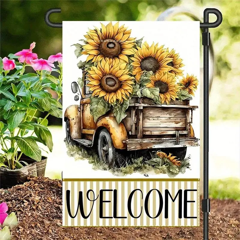 1pc Double-Sided Burlap Sunflower Pickup Truck Garden Flag 12x18 Inch, Rustic Spring Farmhouse Design for Porch Yard Decor, Outdoor Holiday Party Banner