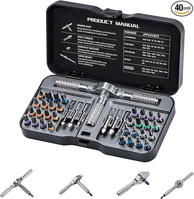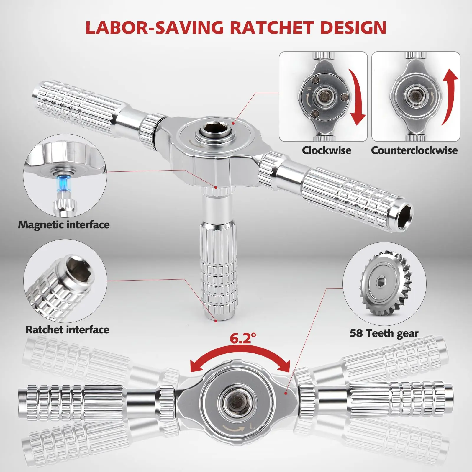 Upgraded Hex Key, Torx, and Slotted Ratchet Screwdriver Set, Magnetic Drill Bits with Size Markings | Easy to Identify and Store, Multiion T-Handle Drive Kit for DIY and Home Repair