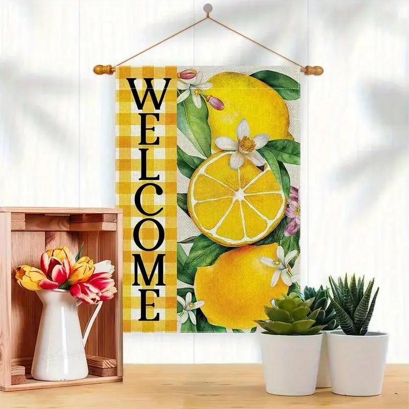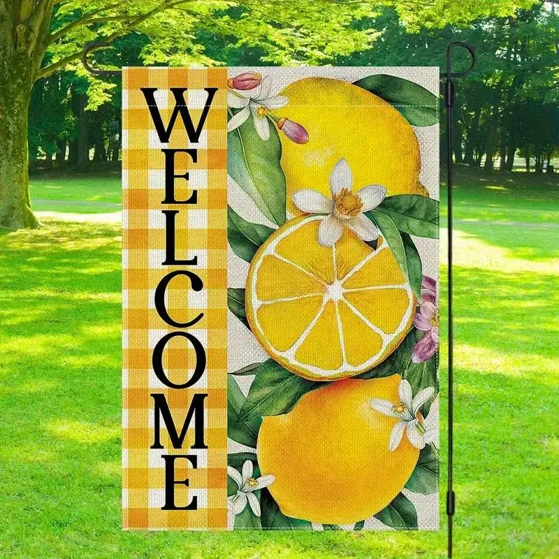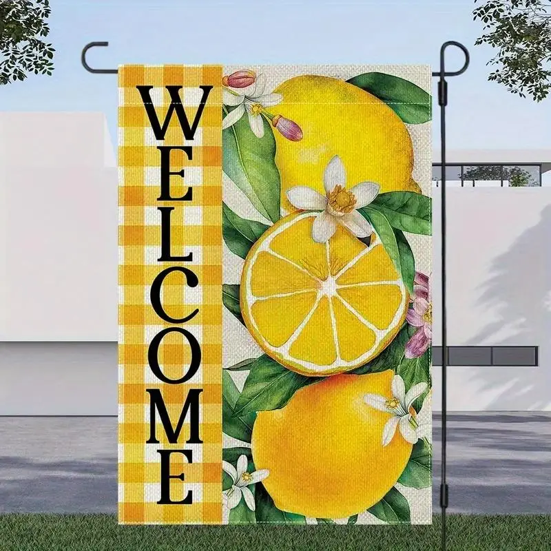 1pc Summer Lemon Welcome Garden Flag 12x18 Inch, Double Sided Fade Resistant Polyester Outdoor Yard Decoration, Farmhouse Style Porch Decor for Seasonal Display, No Flagpole Needed