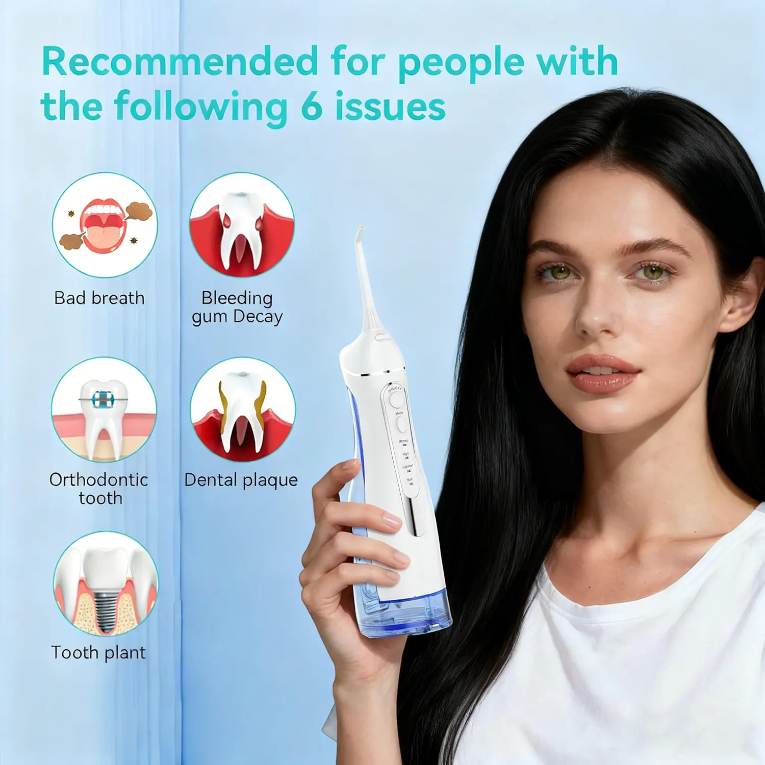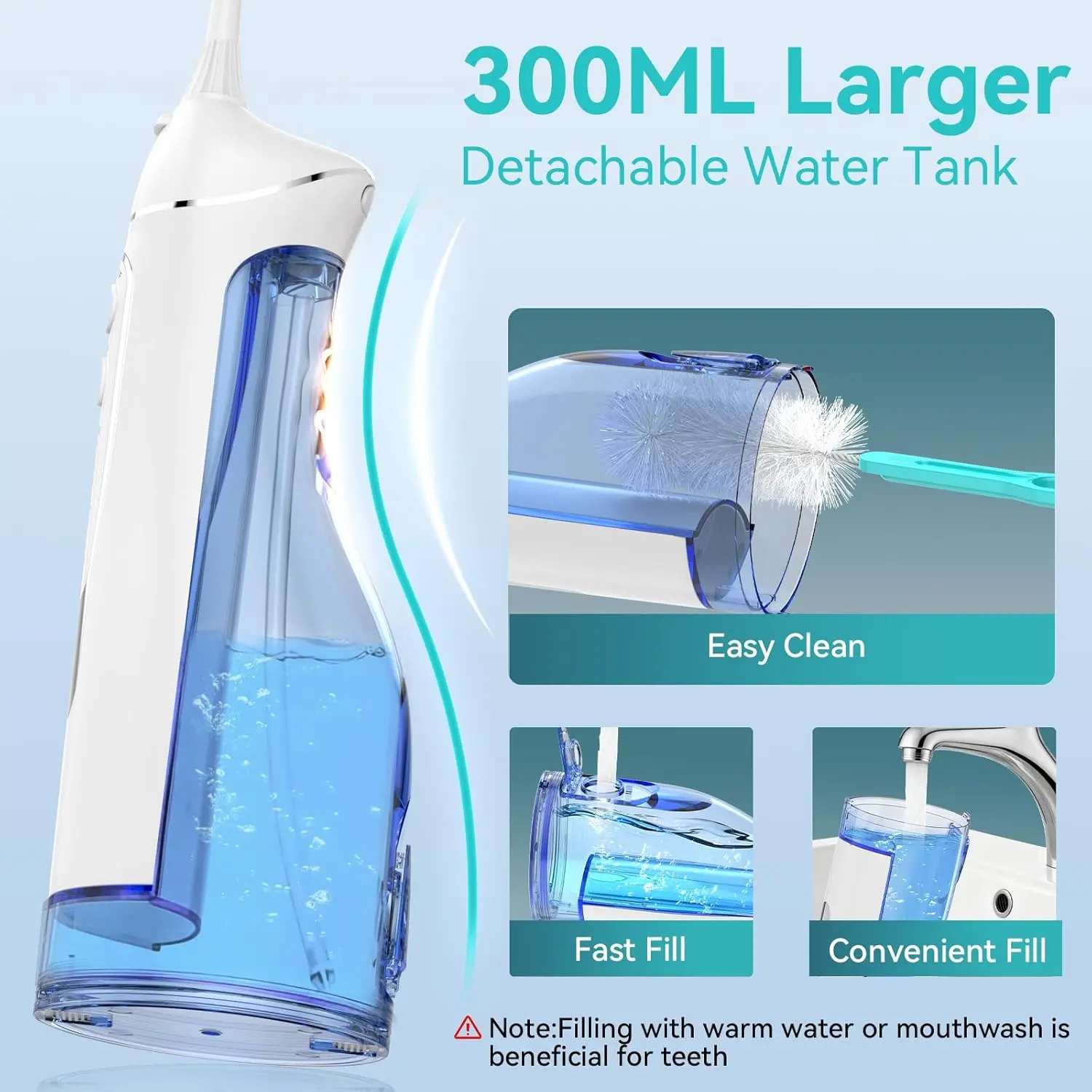Water Flosser for Teeth Cleaning: Cordless Portable Water Dental Pick, 4 Modes Rechargeable Oral Irrigator with 5 Nozzles, 300ML IPX7 Waterproof Electric Flossers for Braces, Travel & Home Use, White