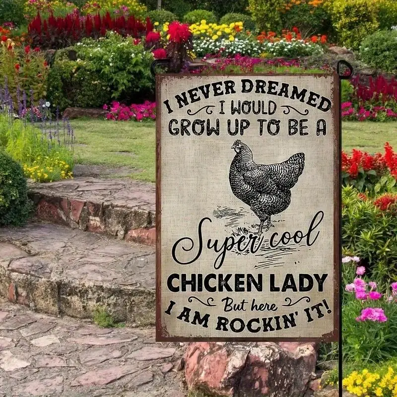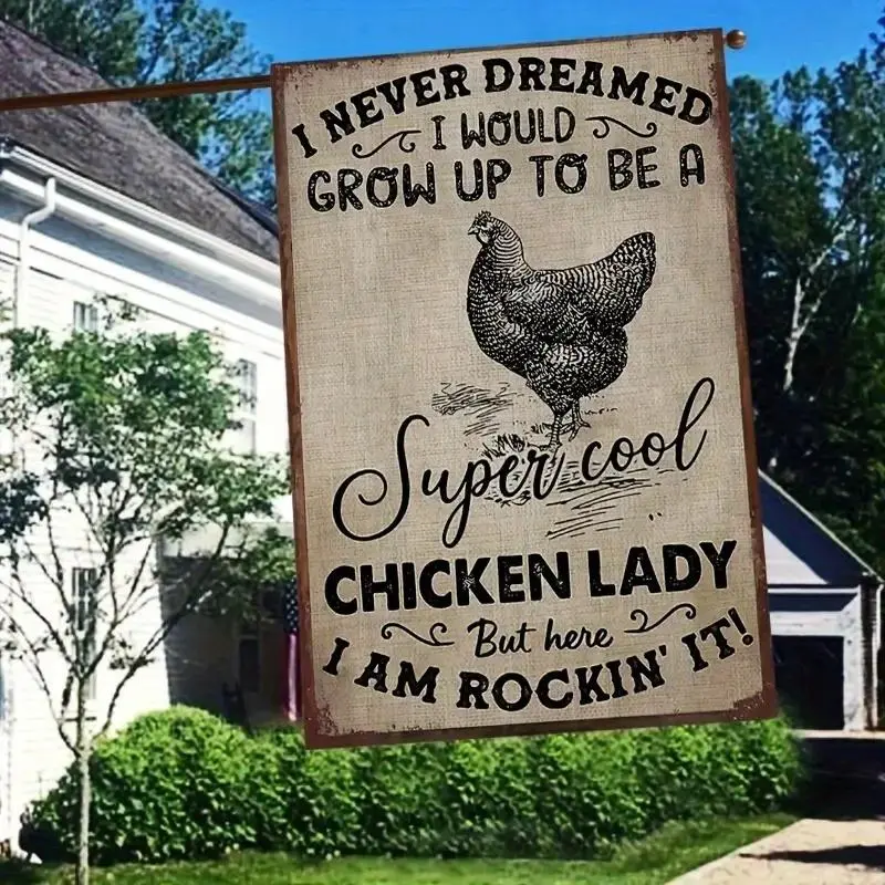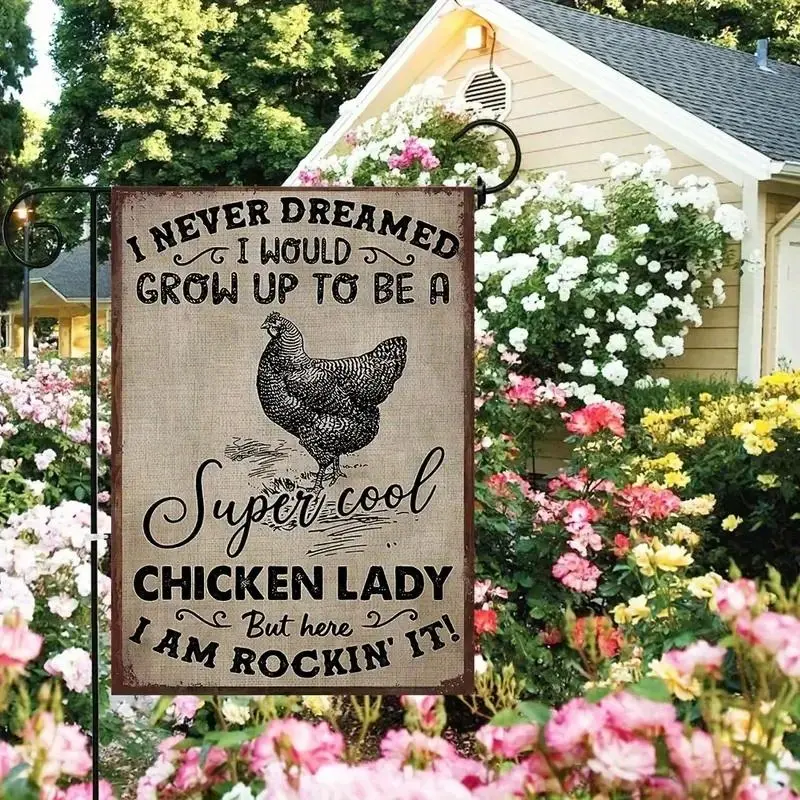 Funny Chicken Garden Flag 12x18 Inch Double Sided, Humorous Farmhouse Burlap Outdoor Yard Decor for Women, No Electricity Needed, Cute Gift for Chicken Lover