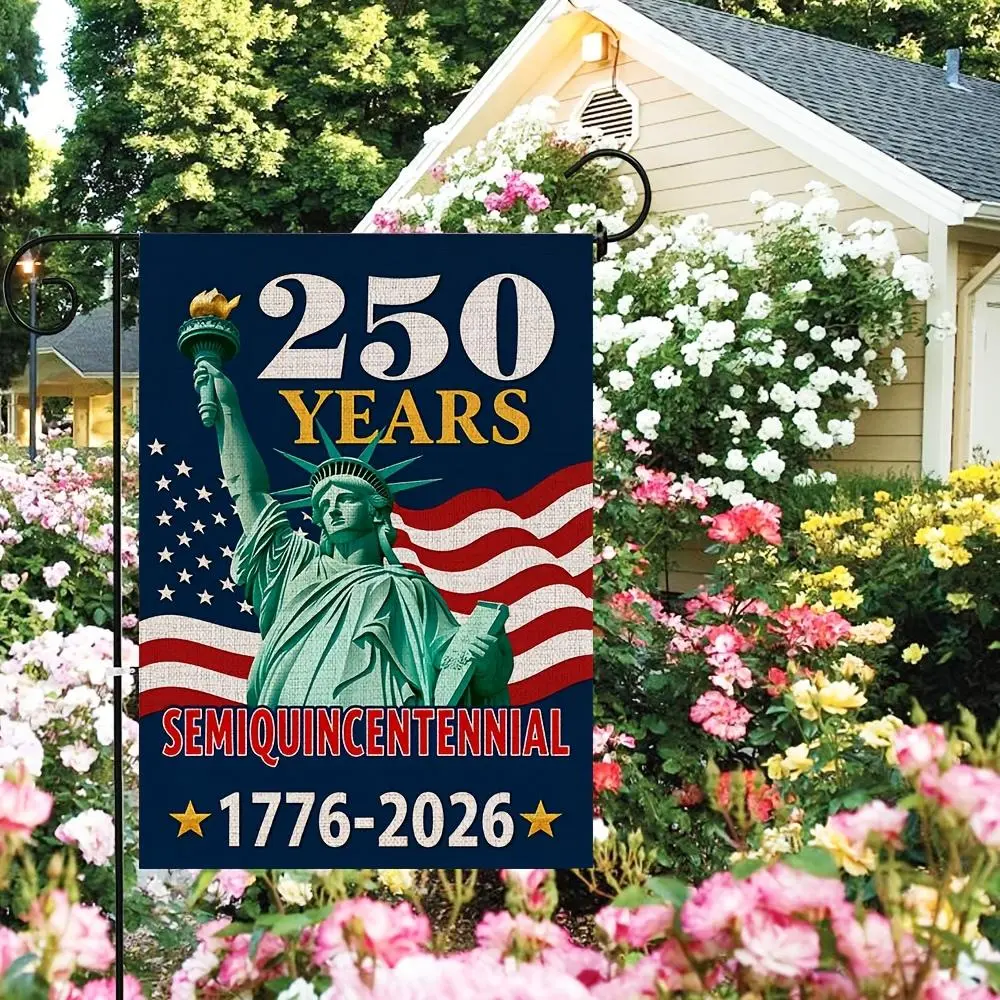 1pc 12X18 Inch Patriotic Garden Flag USA 250th Anniversary with Statue of Liberty, Double-Sided Classic American Pride Decor for Outdoor Yard Lawn Porch, Great for 4th of July Memorial Day Veterans Day
