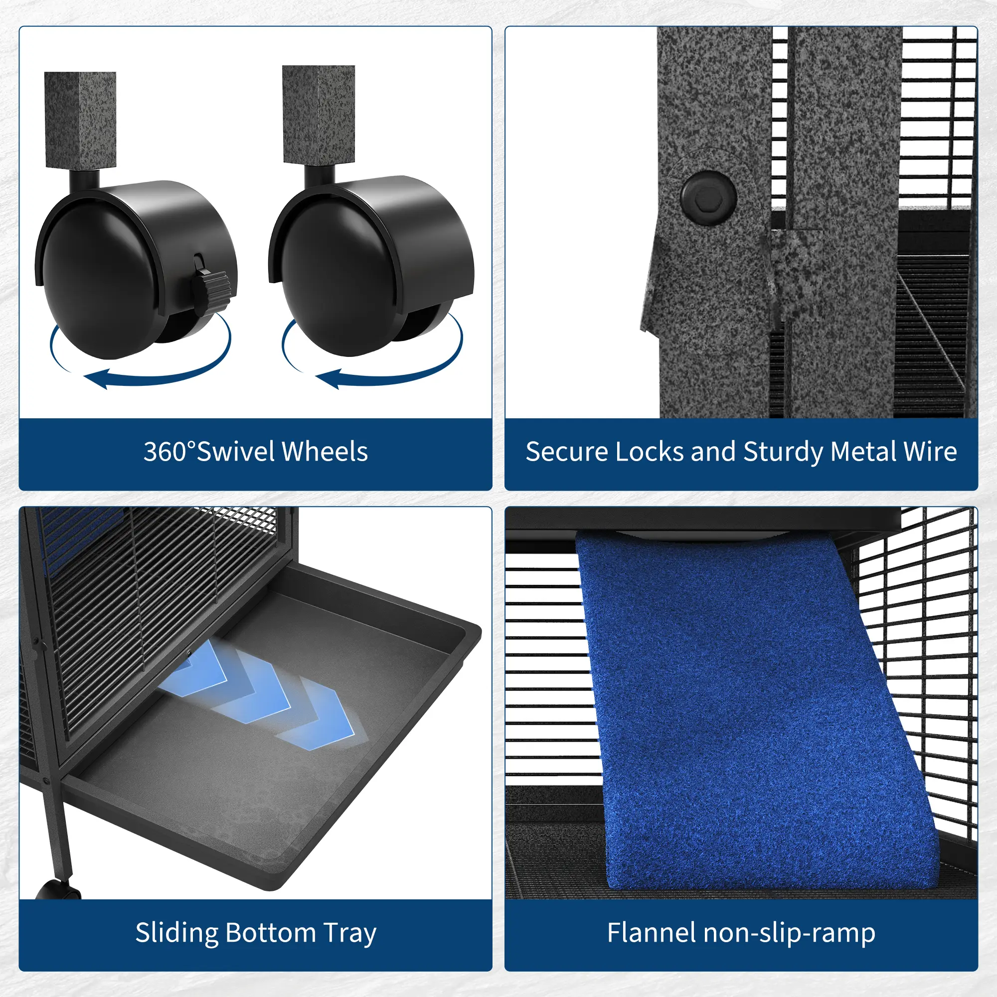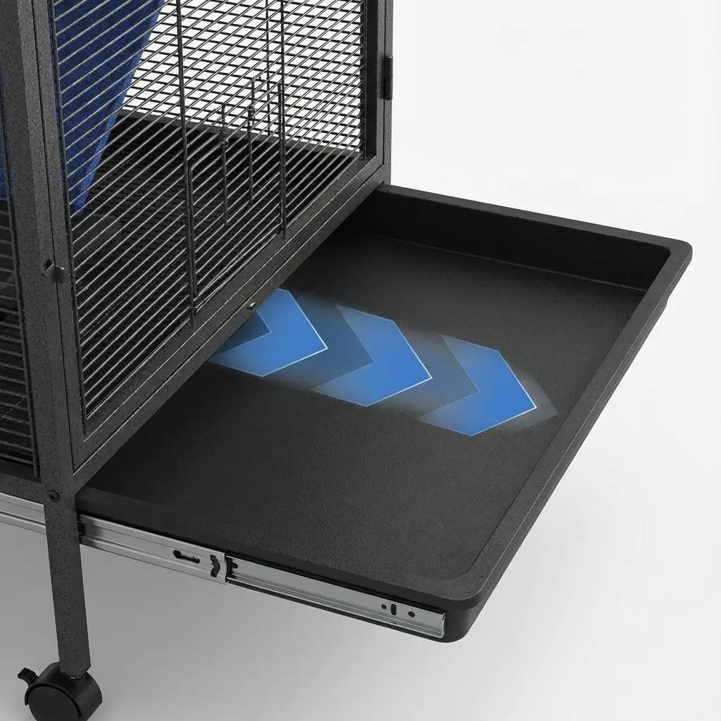 ·Easy Mobility & Maintenance: Equipped with 360° rolling wheels (two with brakes), you can effortlessly move the cage anywhere you need. Removable PP trays make cleaning quick and hassle-free.