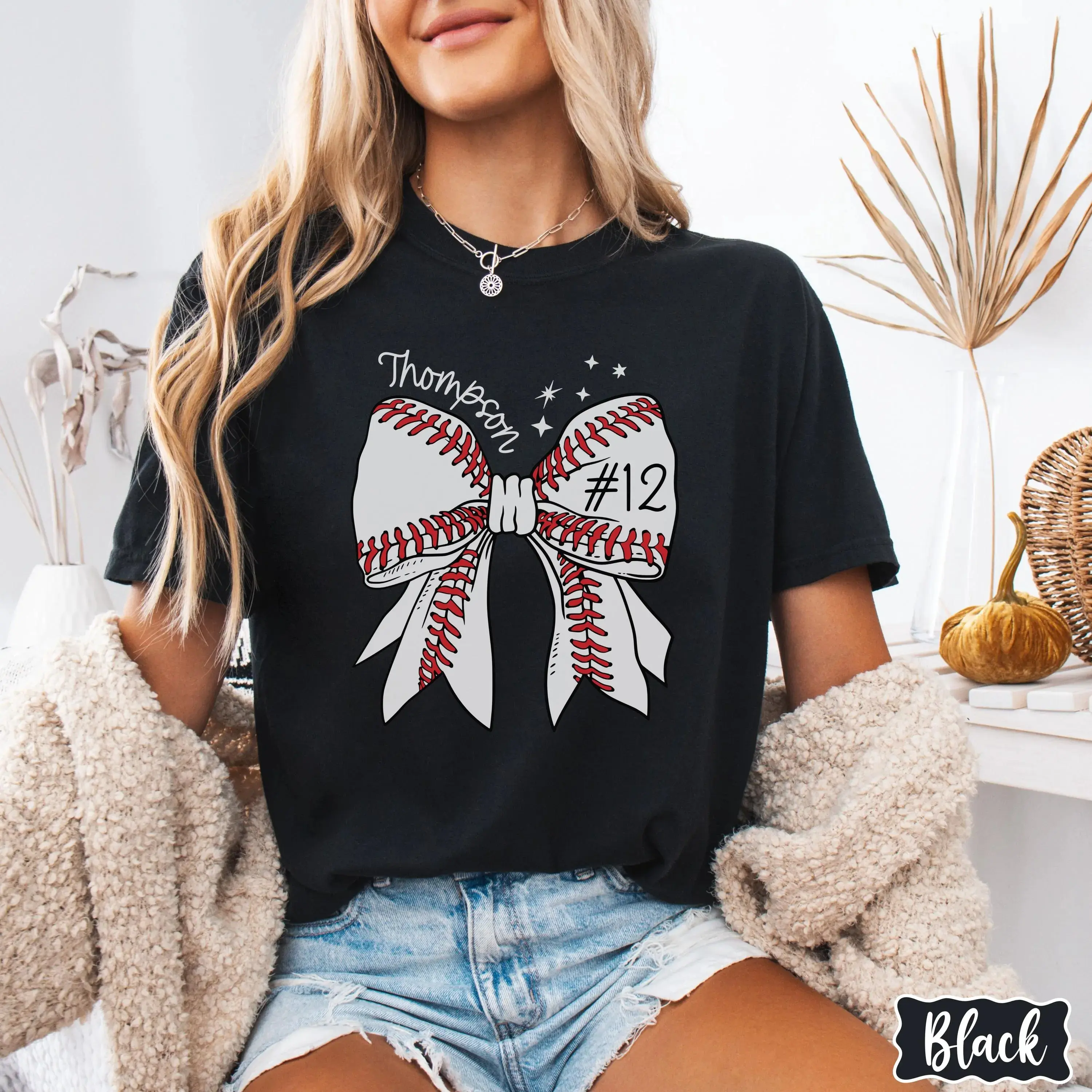 Custom Baseball Number Shirt, Baseball Bow Tee, Personalized Baseball Player Shirt, Baseball Fan Gift, Sports Mom, Game Day