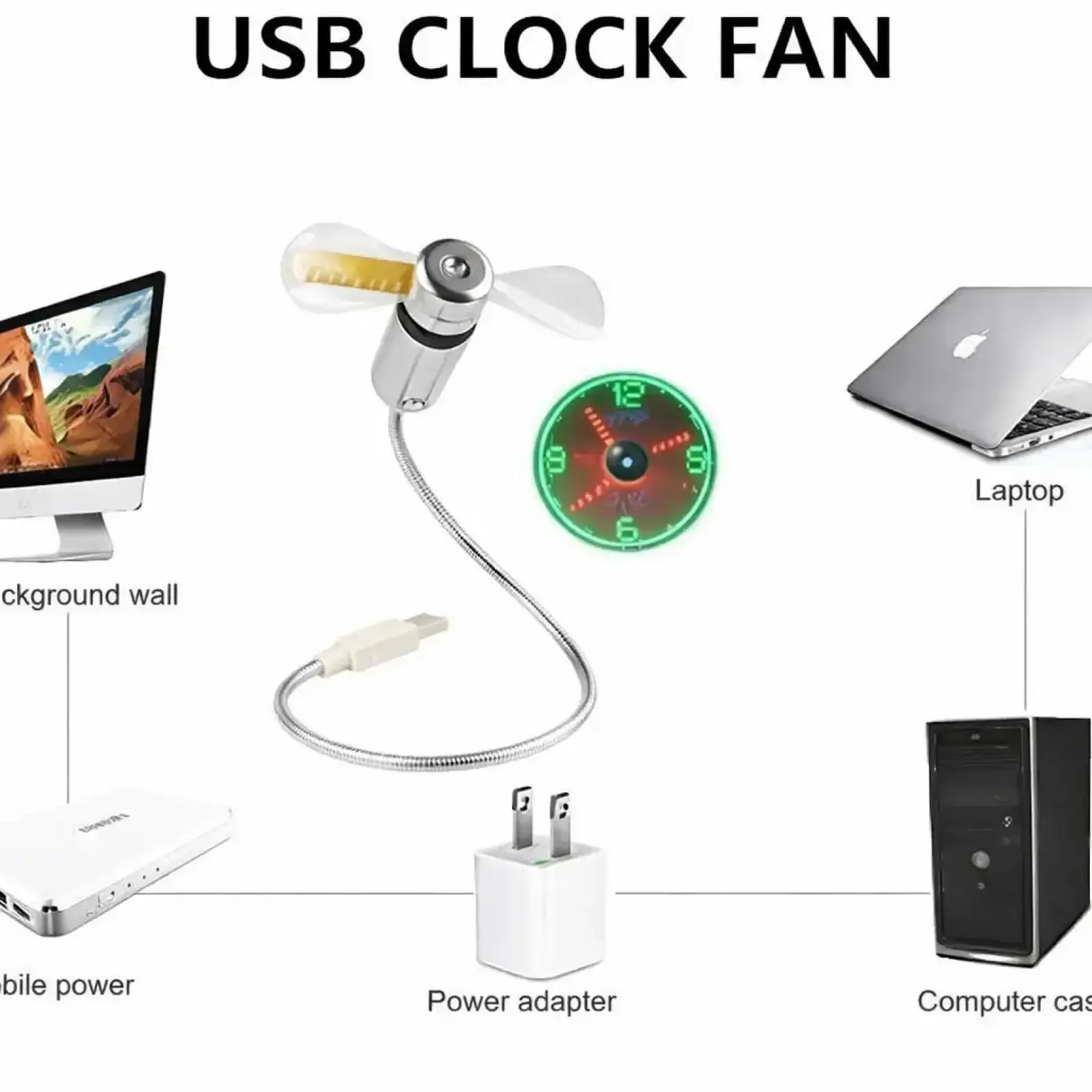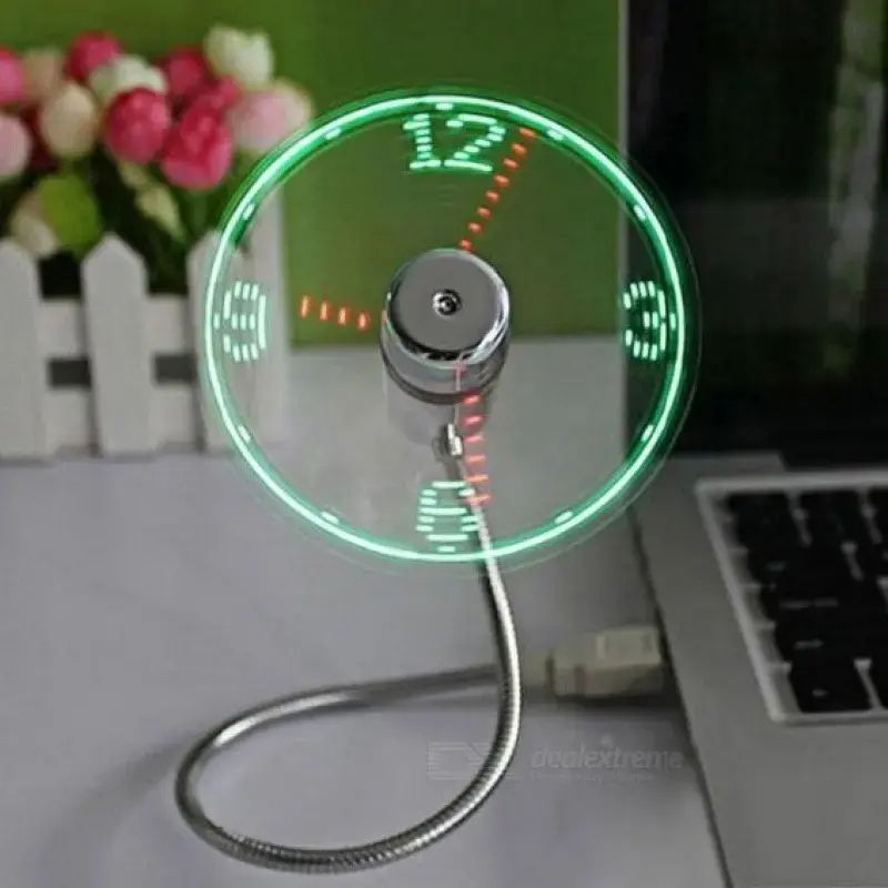 The clock fan is a USB fan with a special blade that creates an LED clock face!