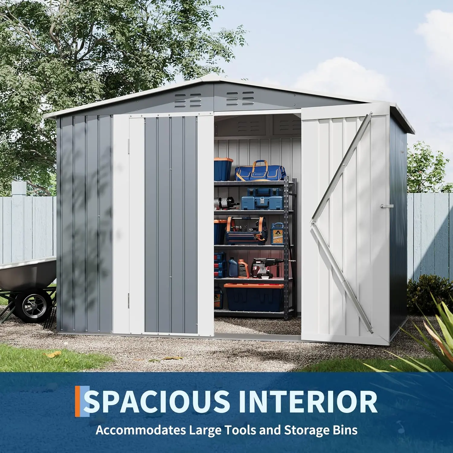 Spacious 8x6 FT Outdoor Storage Shed – Featuring generous interior dimensions of approx. 95.4"L x 73.6"W x 101.1"H, this extra-tall metal shed provides ample vertical and floor space for long-handled tools, garden supplies, lawn mowers, patio cushions, and bicycles. It's the perfect mid-size solution for maximizing backyard storage.