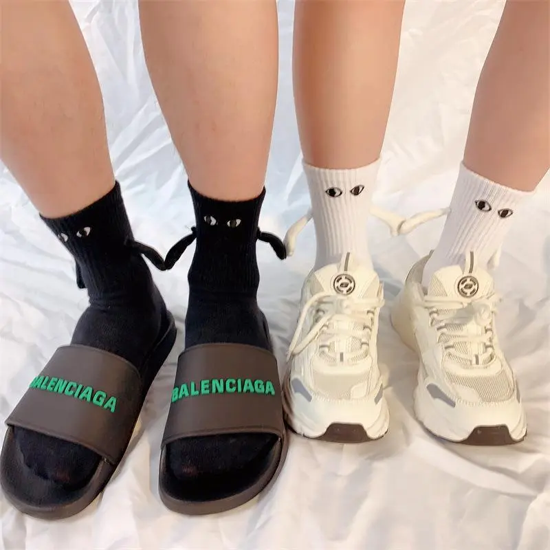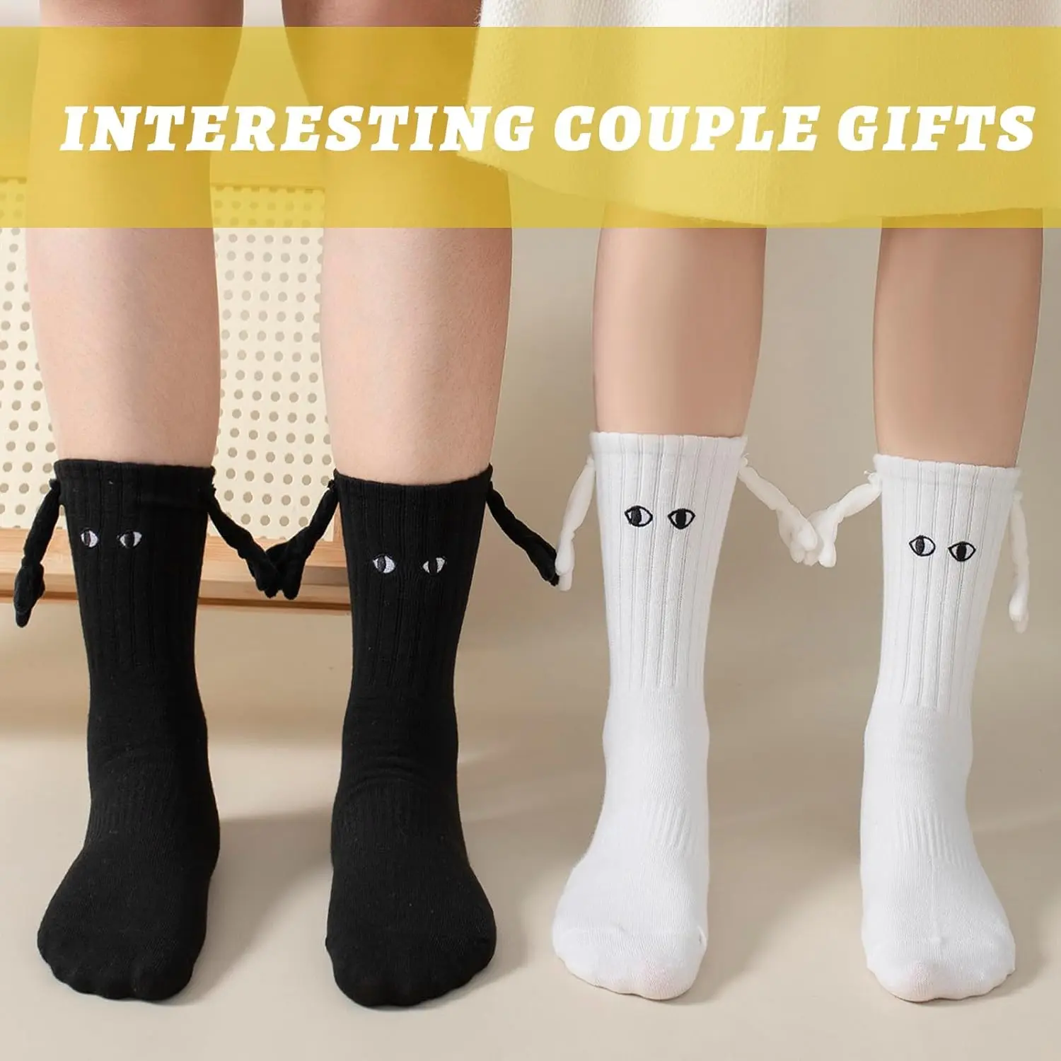 Instagrammable Couple Socks Magnetic Hand Hold Mid Calf Funny Matching Set for Dating Couples BFFs Photo Prop