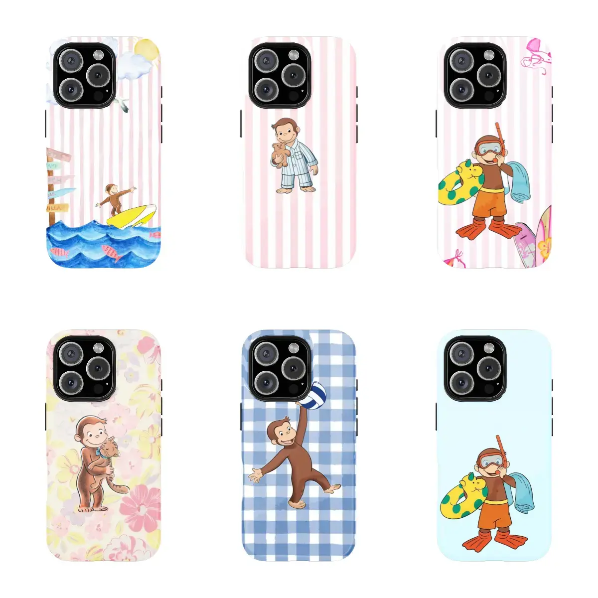 6 style Classic Stripes Colorful Curious George Phone Case - Childhood Favorite Cartoon | Classic Children's Book Phone Cover for Samsung iPhone Cute Retro Monkey with Banana, Party Theme PBS Kid Book Halloween Christma gifts