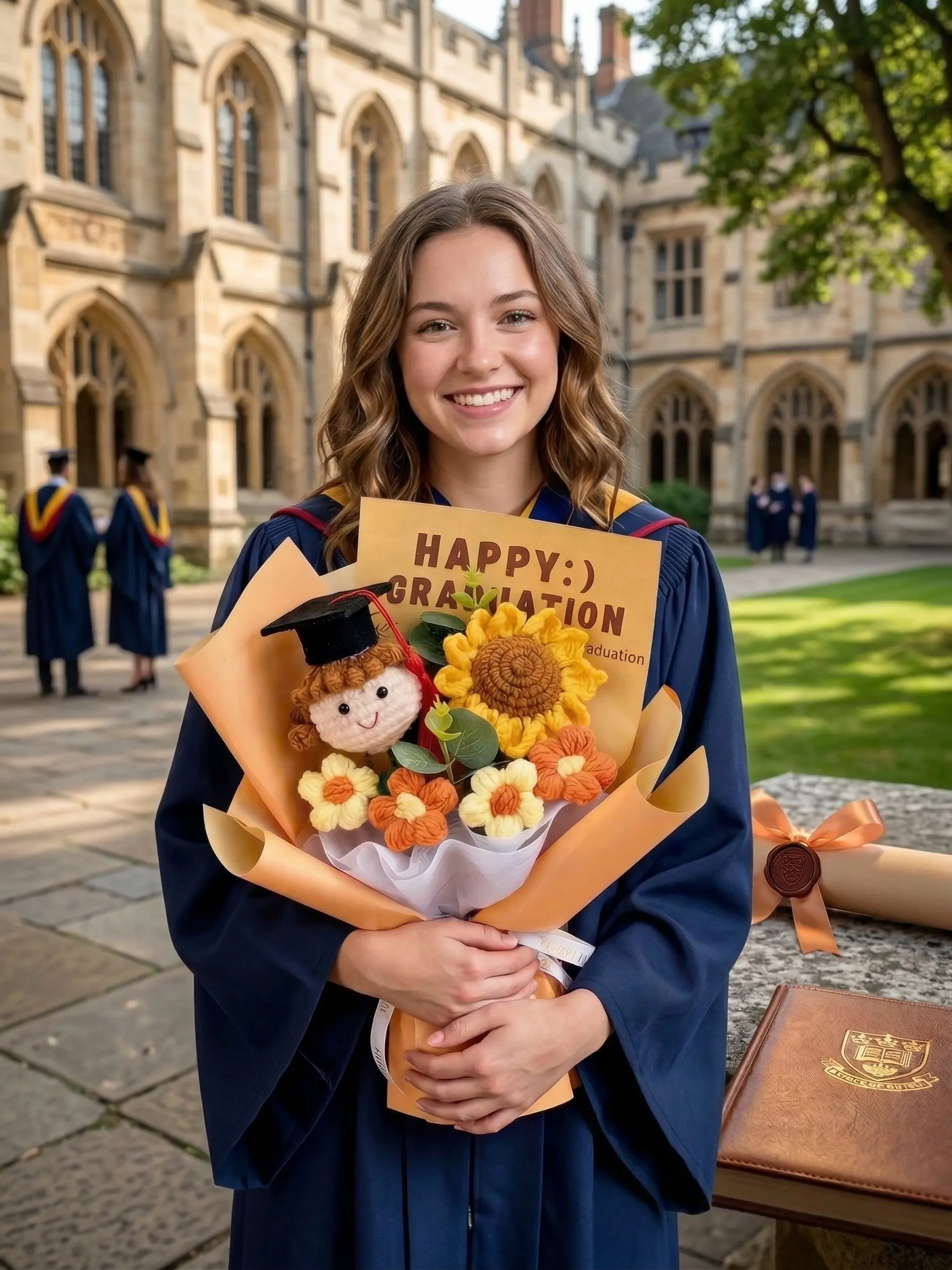 Everyone is buying this handmade crochet graduation bouquet! It's a charming sunflower doll bouquet, ideal for the Class of 2026. This unique gift is sure to delight any graduate. 🌻