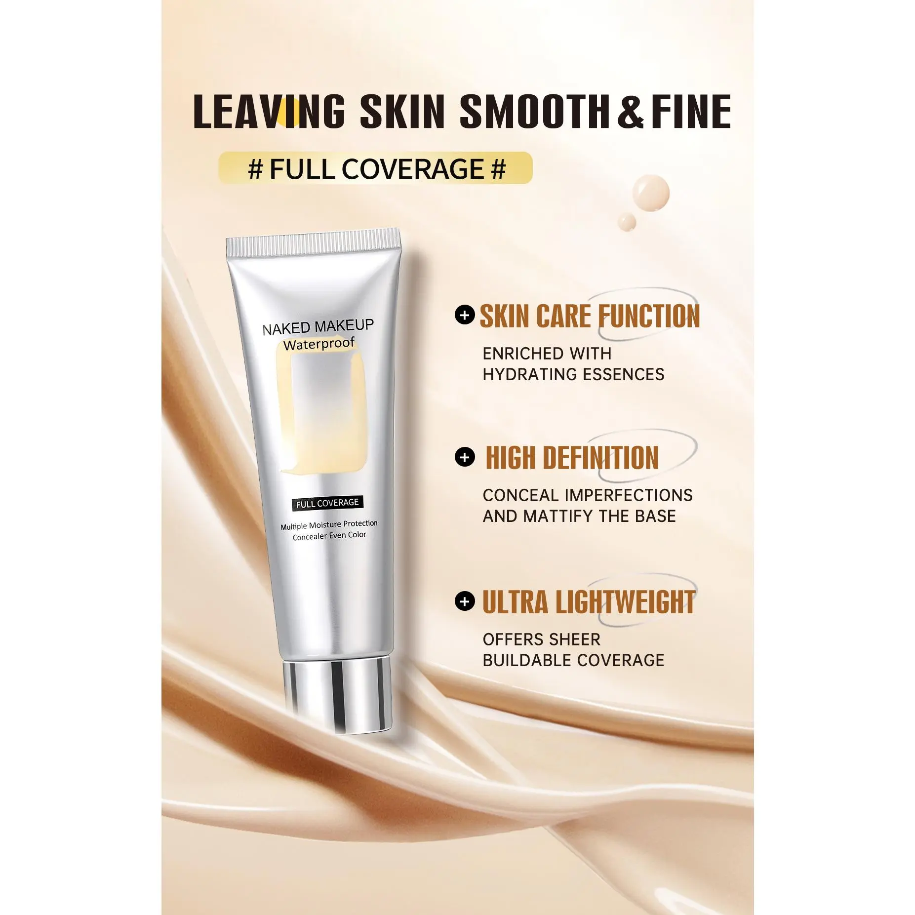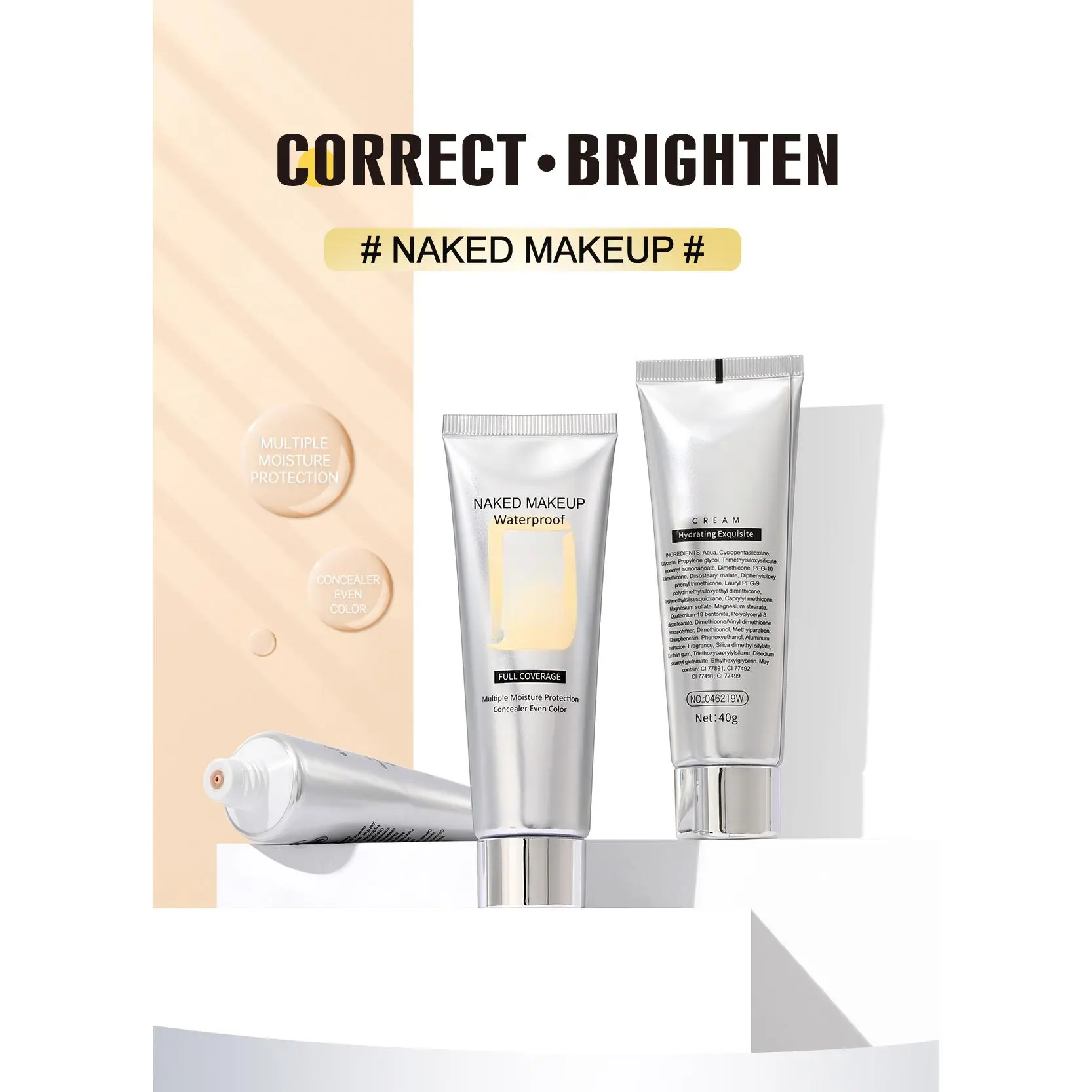 Natural concealer cream that doesn't cake, moisturizing and long-lasting foundation, available in stock