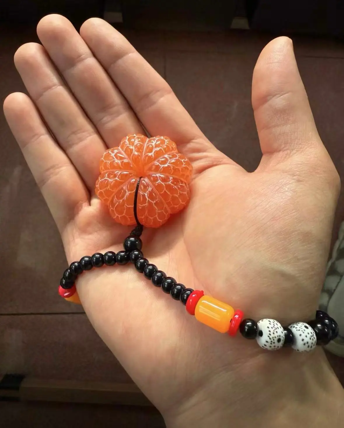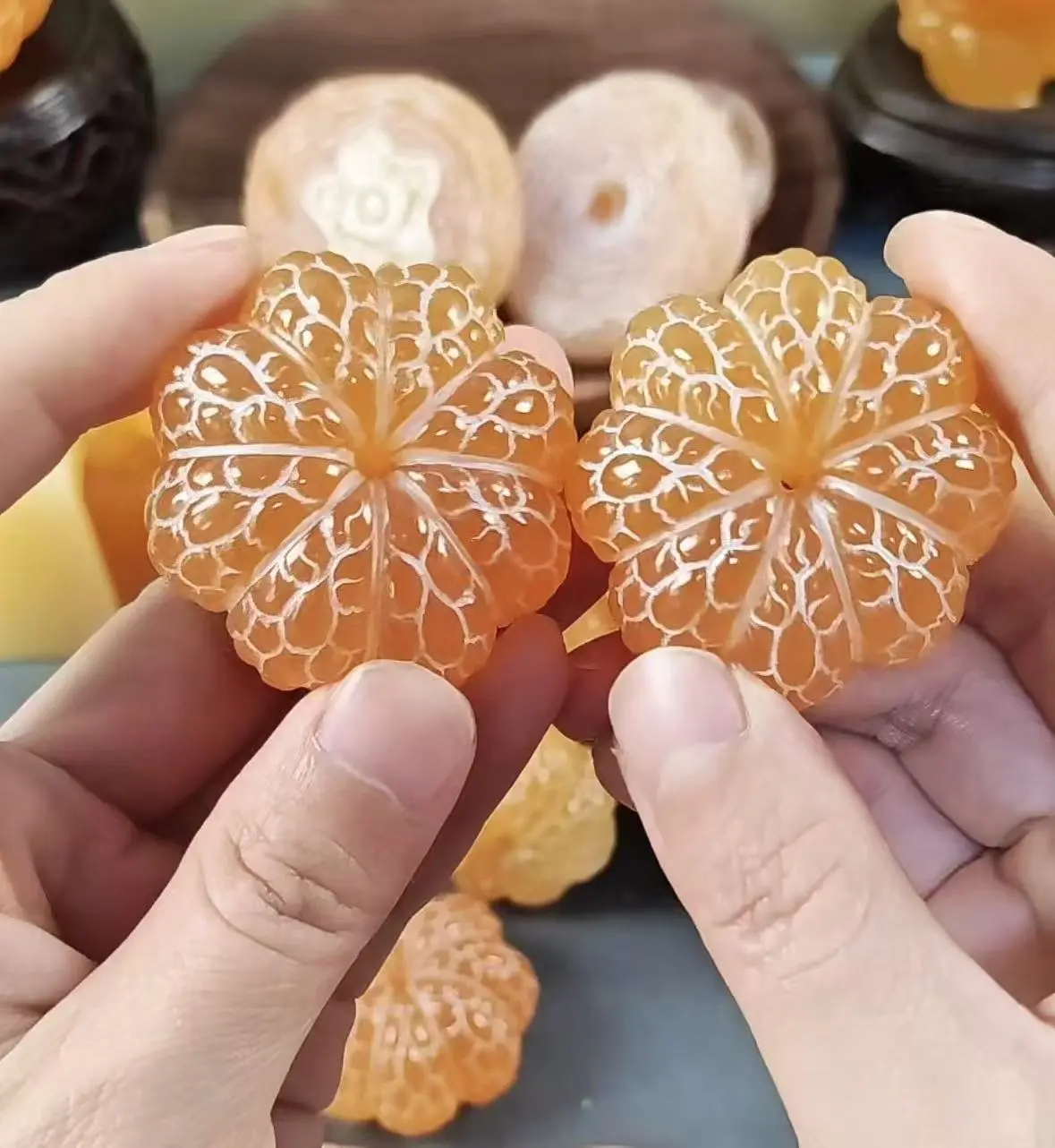 Handcrafted orange stone ornament with intricate carving, realistic design, symbolizing overall success at hand and continuous upward progress.