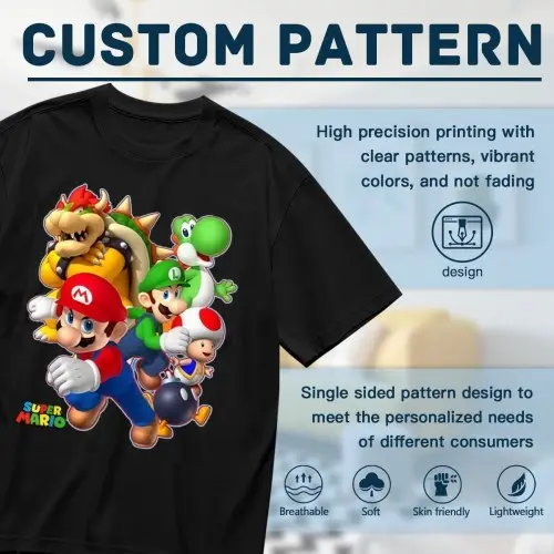 Show your love for the Super Mario universe with this stylish T-shirt. It's a great way to express your fandom while staying comfortable. Perfect for everyday wear or special gaming events.