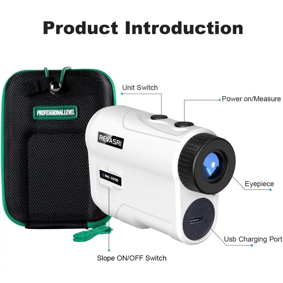 [1000YDS Golf Rangefinder]-A cost-effective and excellent rangefinder that provides you external angle switch, golf slope compensation (recommended hitting distance), flagpole lock and vibration functions.Also featured with 1000 yards range, ±1 yard accuracy, 0.5S quick measurement, built in Li-ion battery and low battery indicator