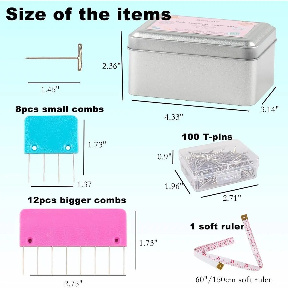 Included Components: 20 knit blocking combs, 100 T-pins, soft ruler, hard plastic case