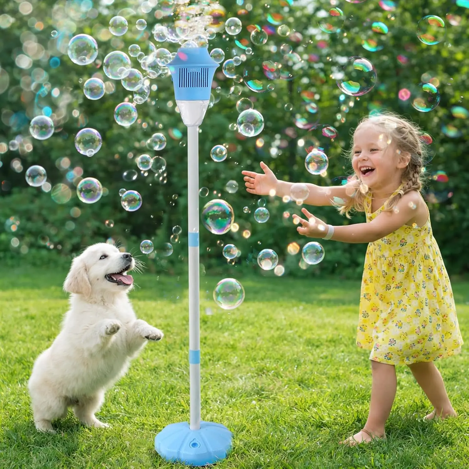 【Free Shipping 】Automatic Bubble Machine for Kids,Standing Torch Bubble Maker with Light/Music for Toddlers, Height Adjustable Up 21 to 47 Inches,Pecfect for Birthday and Outdoor Party, Gifts