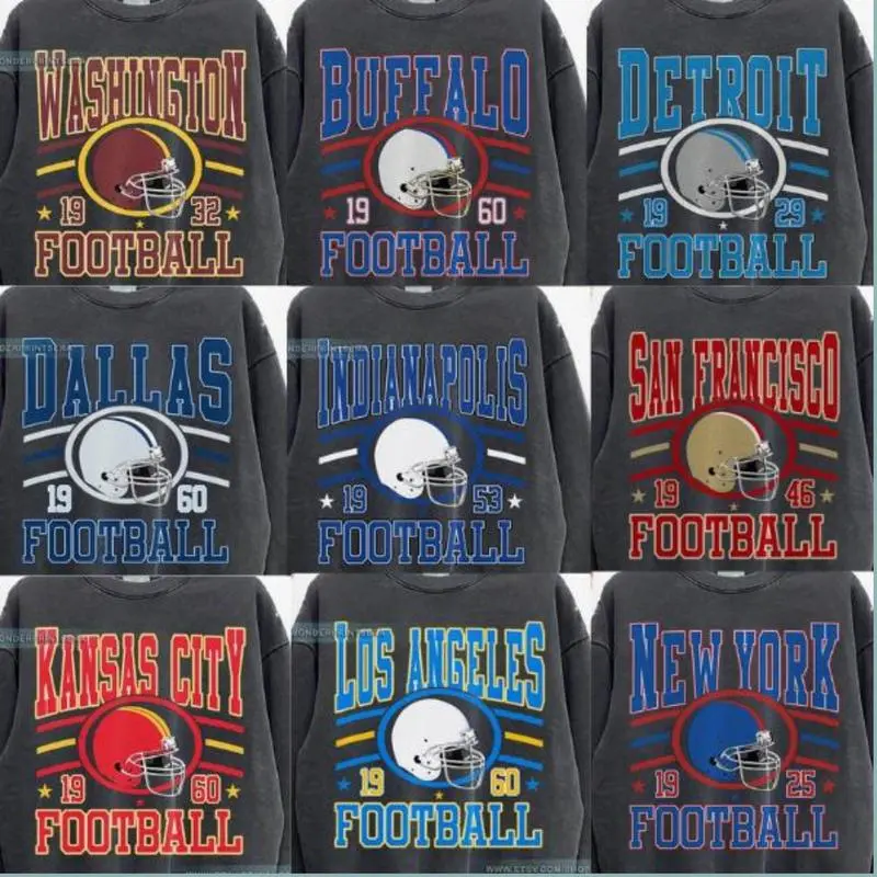 Retro Varsity Football Crewneck Sweatshirt, All Teams Game Day Pullover, Vintage Athletic Streetwear, Unisex, Football Sweatshirt, Gift For Fans