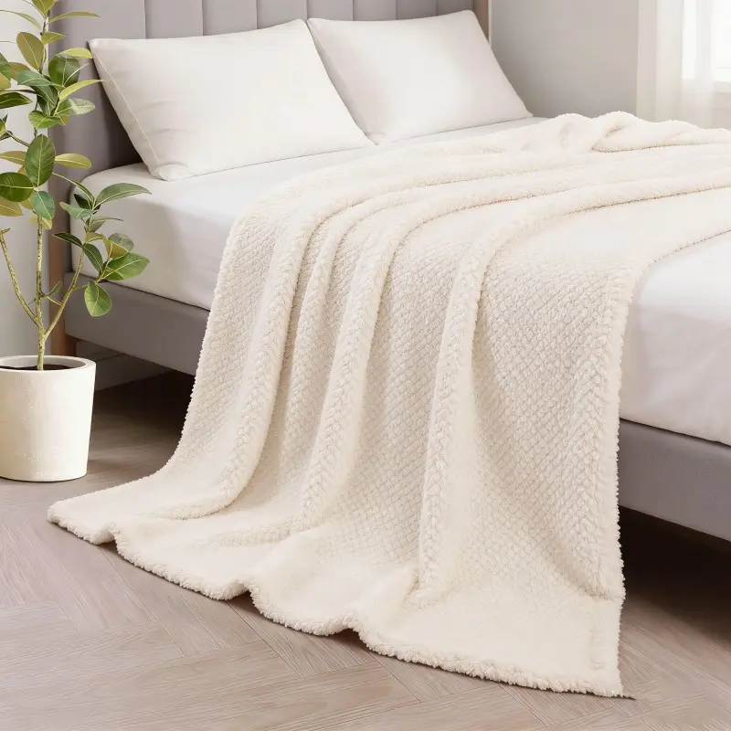 Fuzzy Fleece Throw Blanket for Couch, Fluffy Warm Soft Jacquard Blankets for All Season,Soft Luxurious for Bed, Soft Fleece Throws for Sofa Chair,Cozy Warm Lightweight All Season Blanket Throw