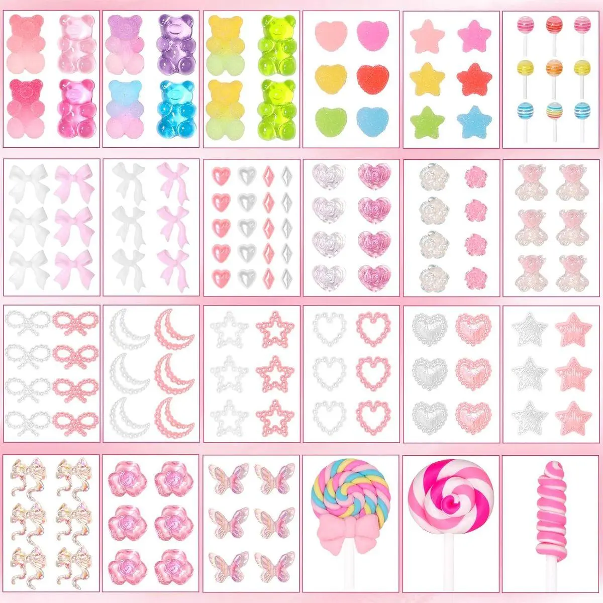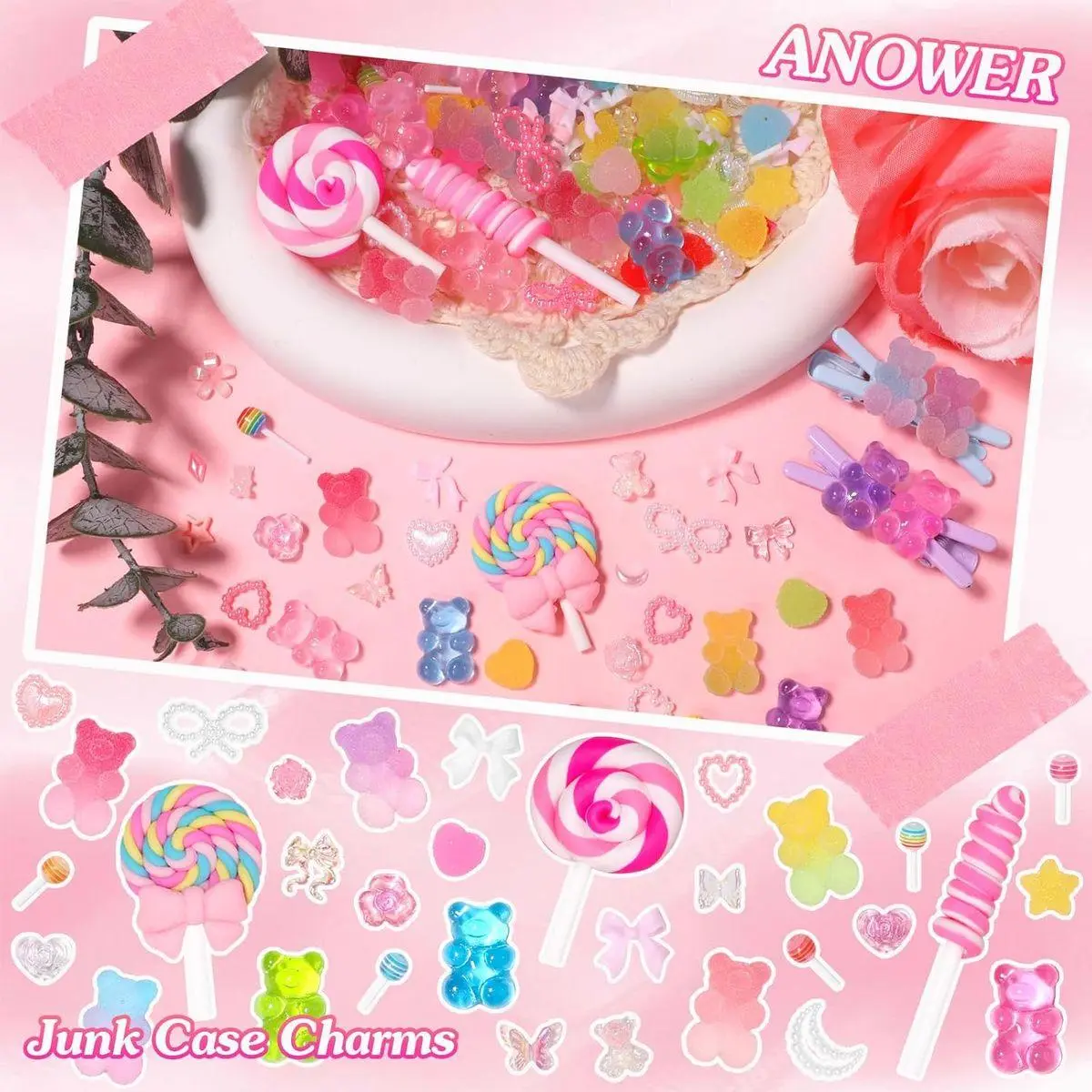 Package Content: This bag of 100 pcs gummy bears candy junk case charms and 300 pcs pink white assorted charms. Sufficient quantity and rich styles can meet your various needs in DIY junk case, phone case, scrapbook or any other handmade projects
