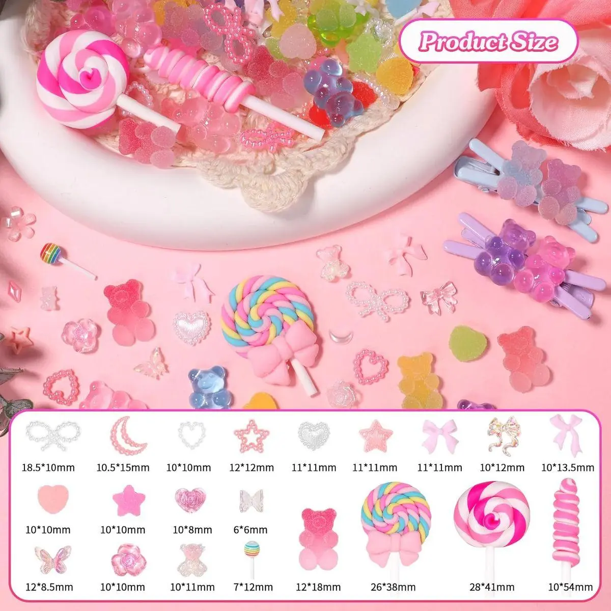 Multi Shapes: These cute random flatback resin charms are available in a variety of shapes and styles, such as candy, gummy bear, lollipop, star, heart, bow, flower, butterfly, moon and so on, cute and stylish, multiple choices for you to use, bringing more fun to the decorating process