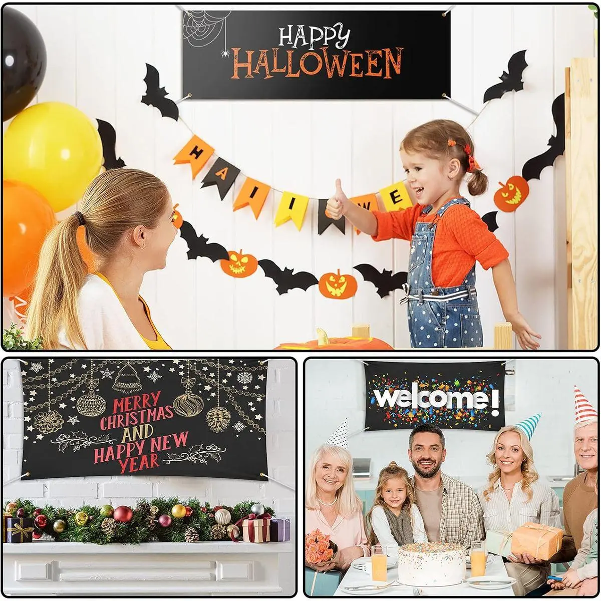 Big size: the large banner measures approx 0.6 x 1.2 m/ 2 x 4 feet, which is generally suitable for most places; There are four round holes around the 4 corners and a 6-meter-long rope for easy hanging