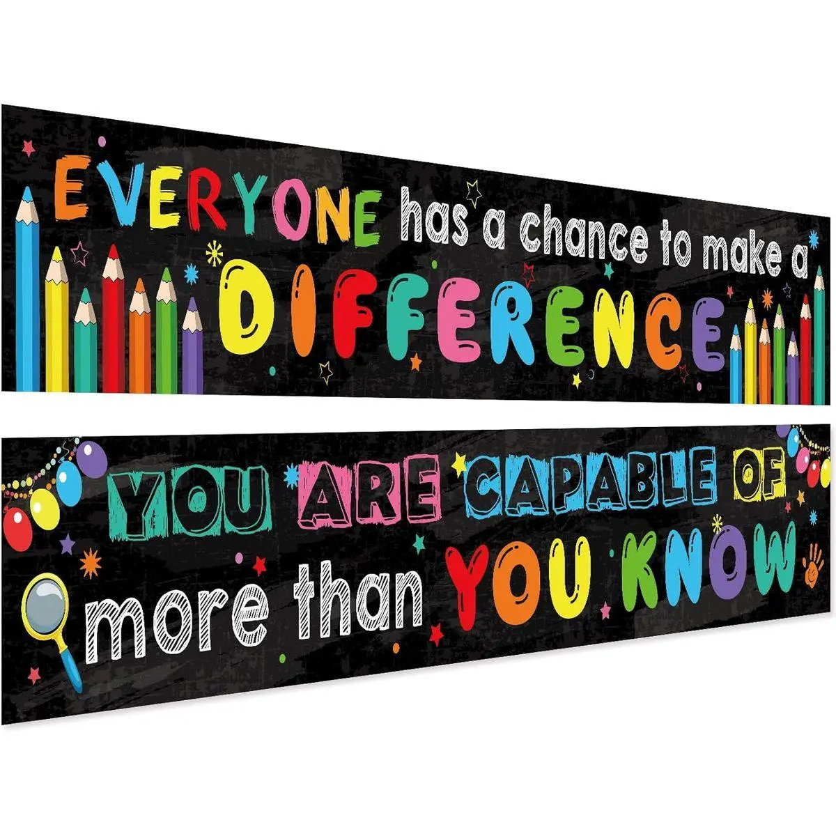 Original design: 2 inspirational banners, can be applied as combination or separate part, bright colors with message--everyone has a chance to make a difference and you are capable of more than you know, show delightful and positive feelings, match up with other home or classroom decoration