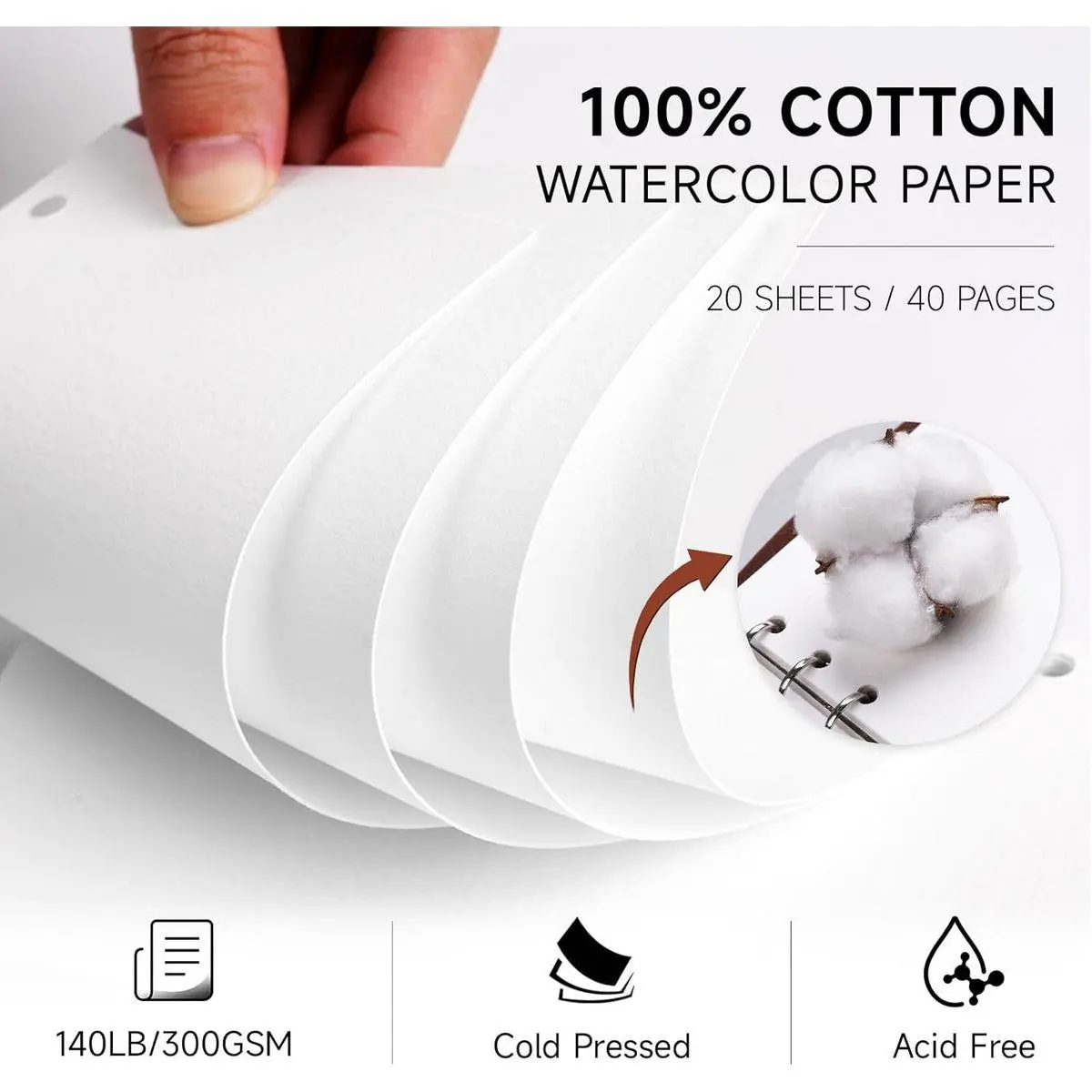 Refillable Ring-Bound Design: This design features easy detachment and display capabilities, allowing you to effortlessly add or remove watercolor sheets as needed. It's the perfect choice for artists on the go.