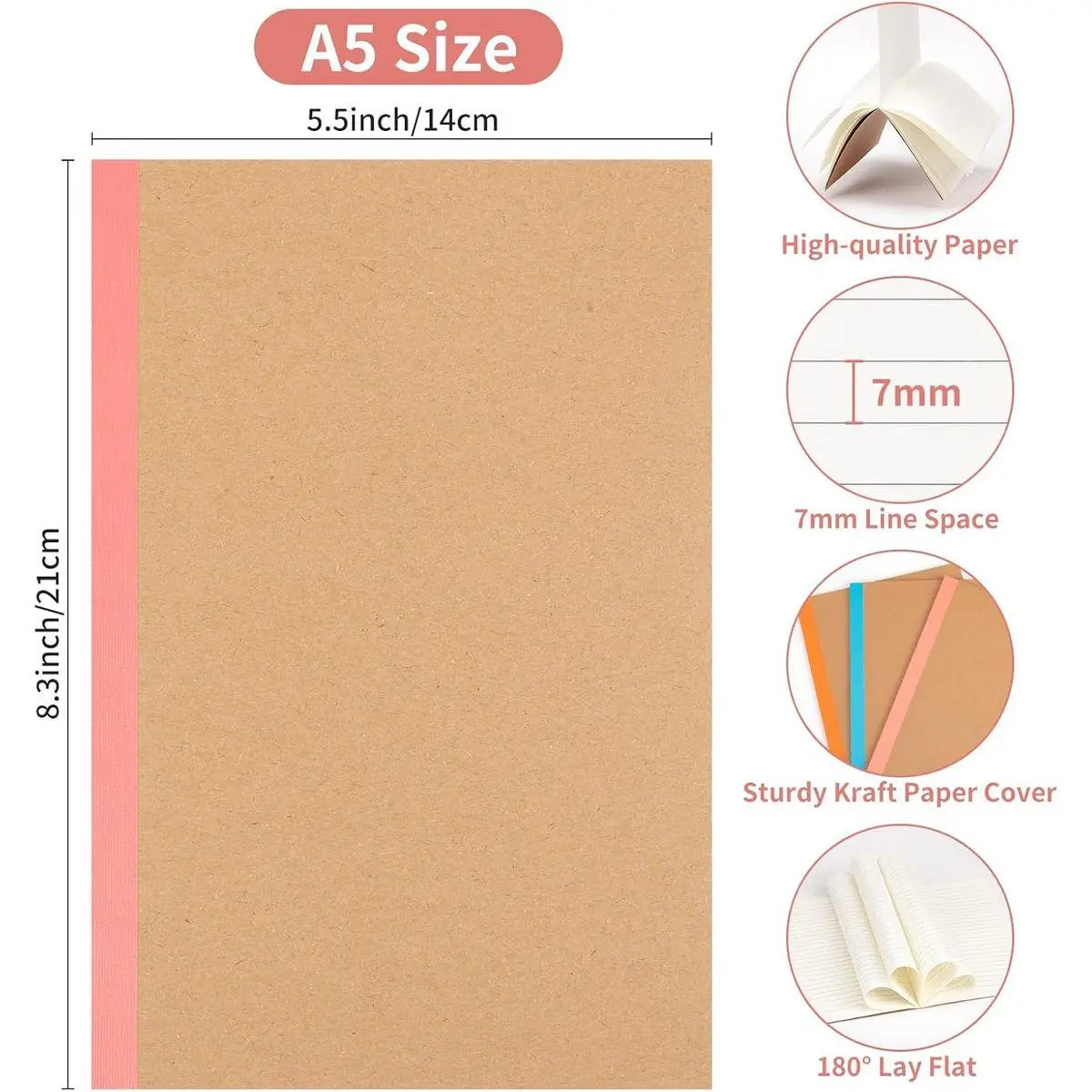 【High Quality Material】The cover of our kraft notebook is sturdy, and the premium paper inside is also sturdy. The paper is thick and smooth for a good writing experience, which makes it perfect for writing with ballpoint pens, gel pens, and mechanical pencils. However, it should be noted that this is not suitable for markers and highlighters.