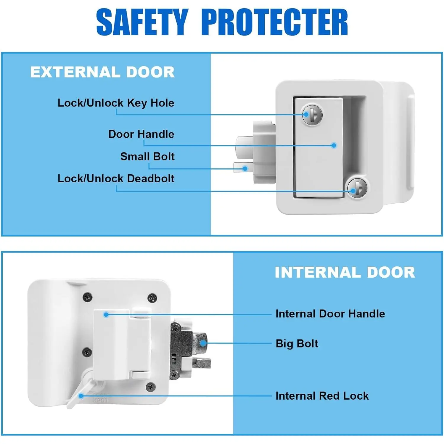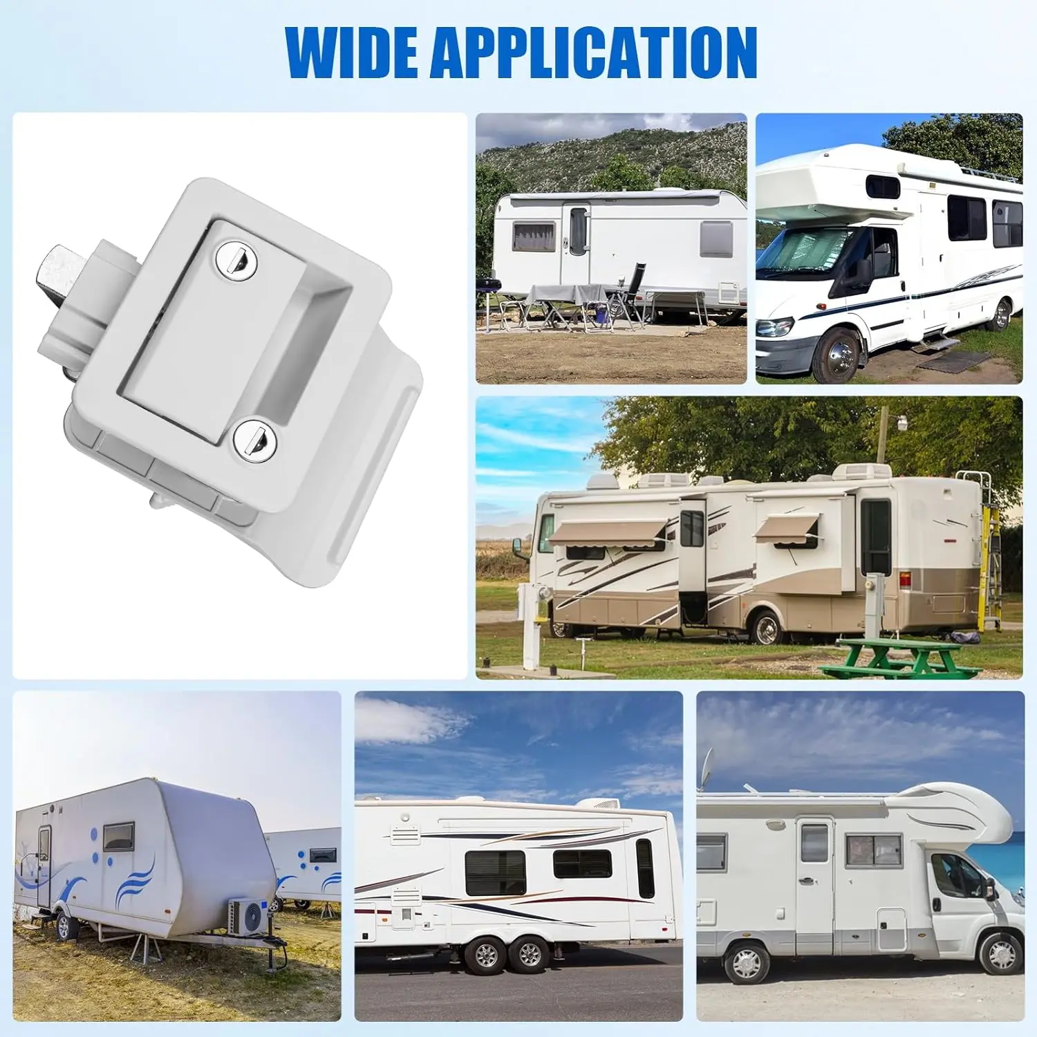 Convenient Access: Say goodbye to fumbling with keys.Our RV door latch has four keys, providing ample backups for added convenience.The paddle deadbolt design enables quick and easy locking and unlocking, so you can focus on enjoying your adventures without any hassle