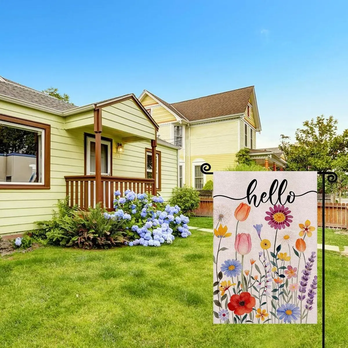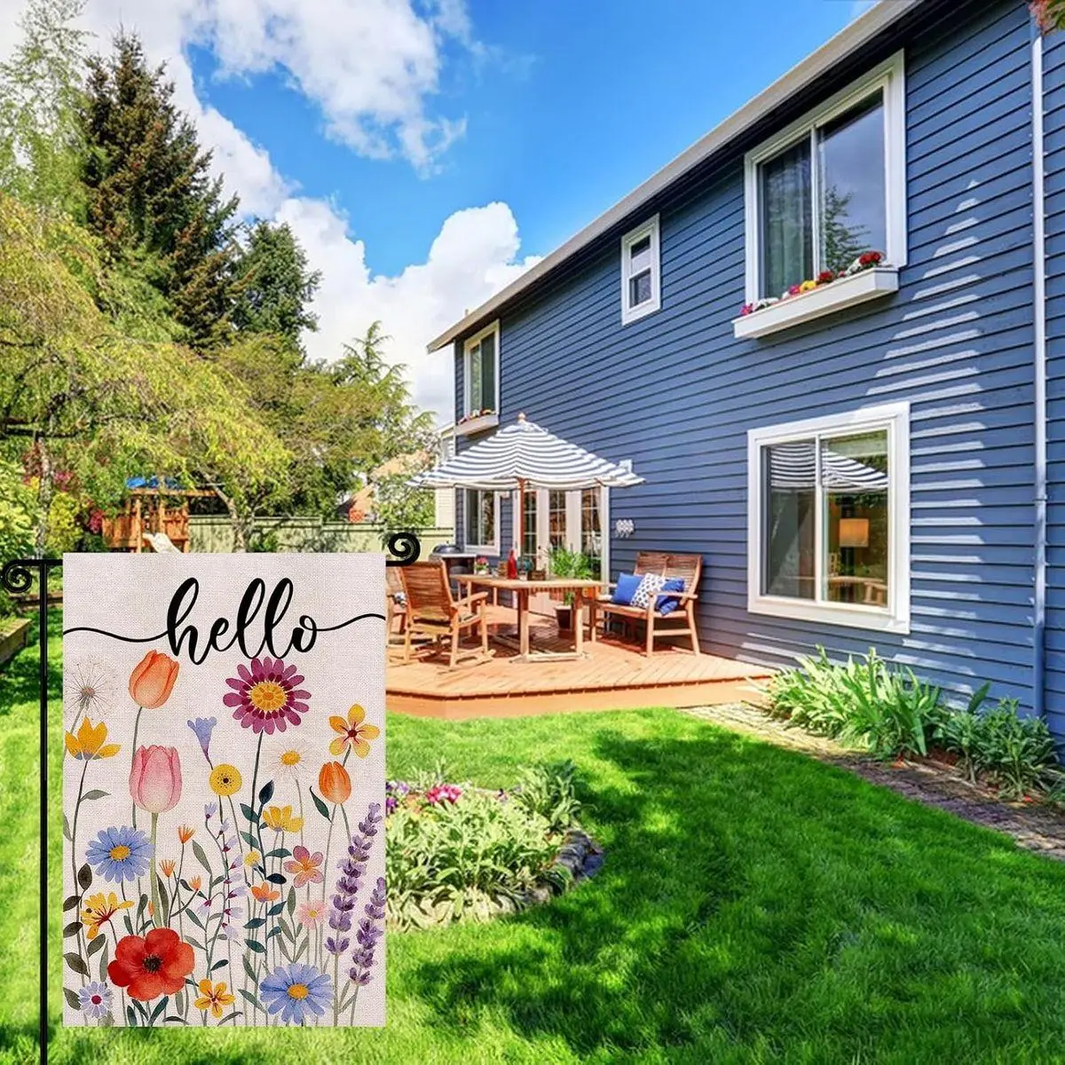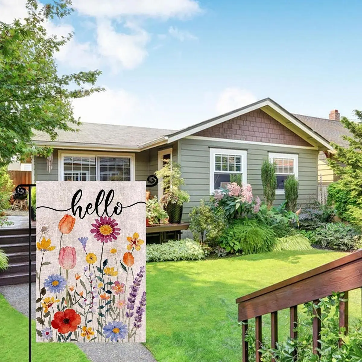 Festival Design: A garden flag with spring as the theme. Very suitable for spring gatherings. Colorful, bright, and eye-catching, it is an excellent addition to any garden or entrance. When every guest enters your home, they feel extra joy and comfort, adding a wonderful atmosphere to your outdoor space