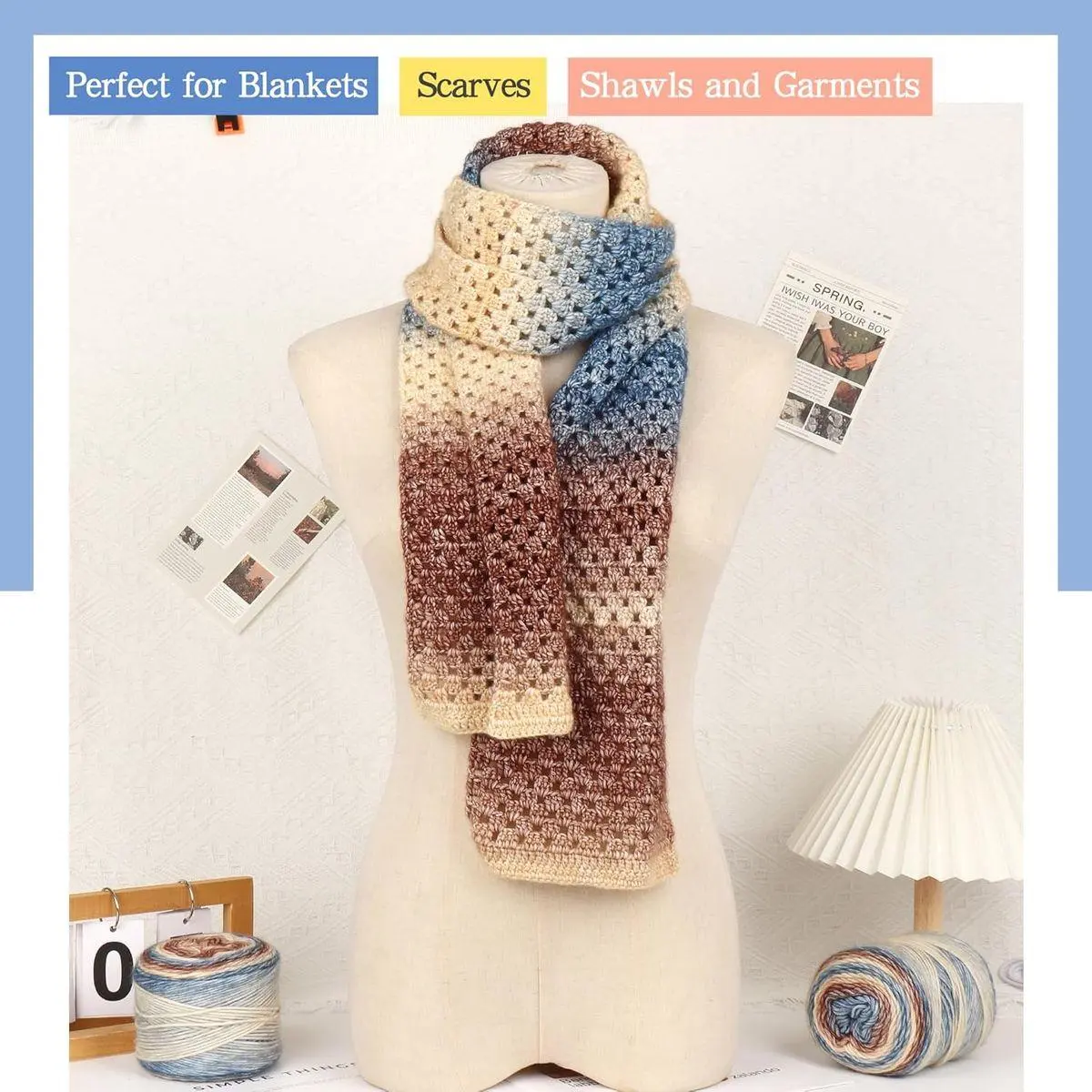 【Extra 2 Crochet Hooks】:Our gradient cake yarn contains 4 balls of yarn and comes with two extra easy to grip ergonomic crochet hooks. If you got this bargain.You would NEVER regret it!!! Embark on a chromatic odyssey with our gradient-colored cake yarns!