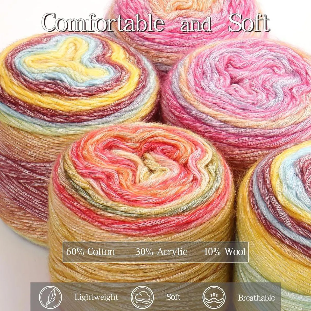 【Soft and Fluffy Texture】:Fairyland Cake is a 60% cotton 30% acrylic 10% wool blend air yarn. Each ball of this is #3 DK (Light) Gauge Yarn-lightweight & breathable. Experience the joy of working with our incredibly soft and fluffy yarn, enhancing the comfort and appearance of your creations with every stitch.
