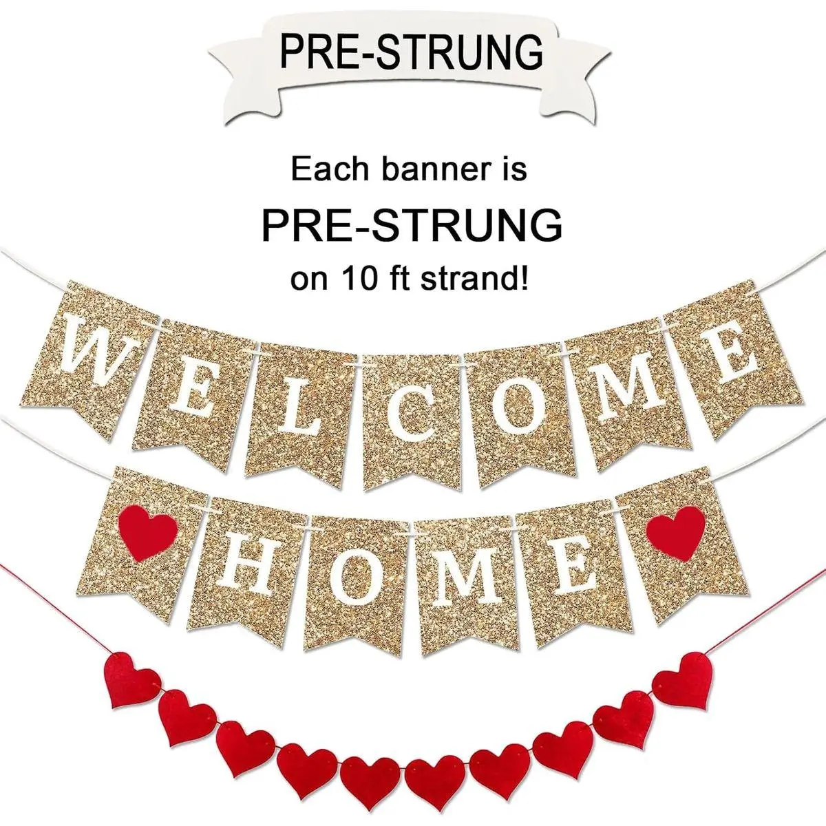 5. Gold Welcome Home Banner - Fully Assembled and Ready to Hang - Glitter Welcome Home Decoration for Housewarming, Military Homecomings, and Family Celebrations - 8 ft Strand(Gold WelcomeHome)