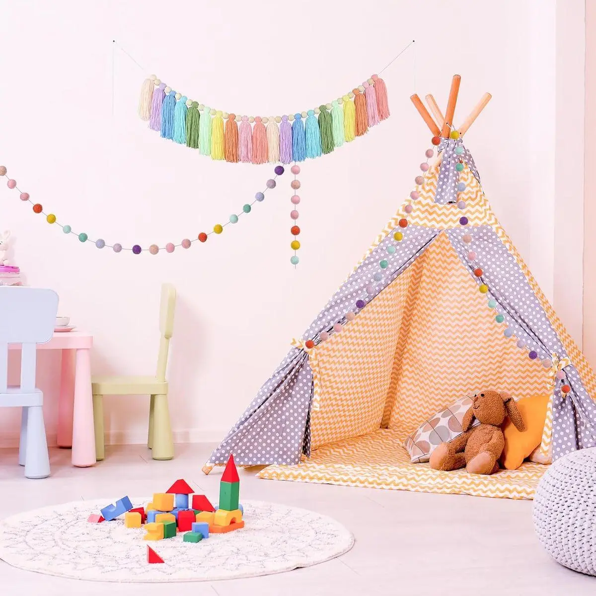Ideal Home Decoration: You can hang the pastel tassel garland across the mantel, on walls, window, shelf, over doorway or many places you like, or place it on the bulletin board as a flowing centerpiece to highlight the joyful and sweet festival atmosphere