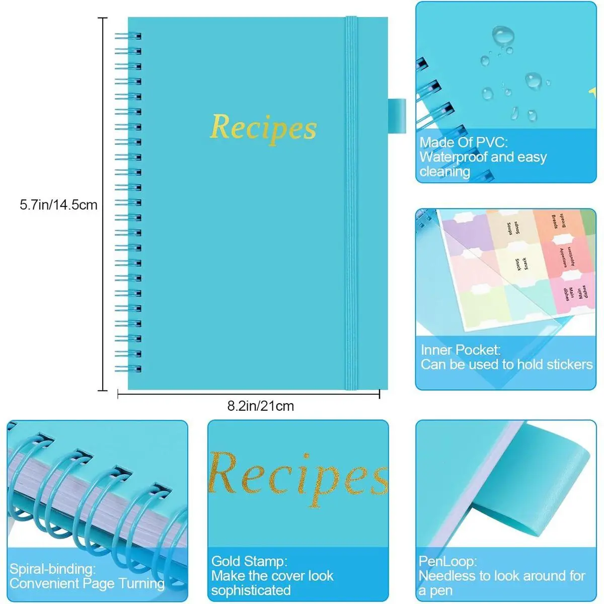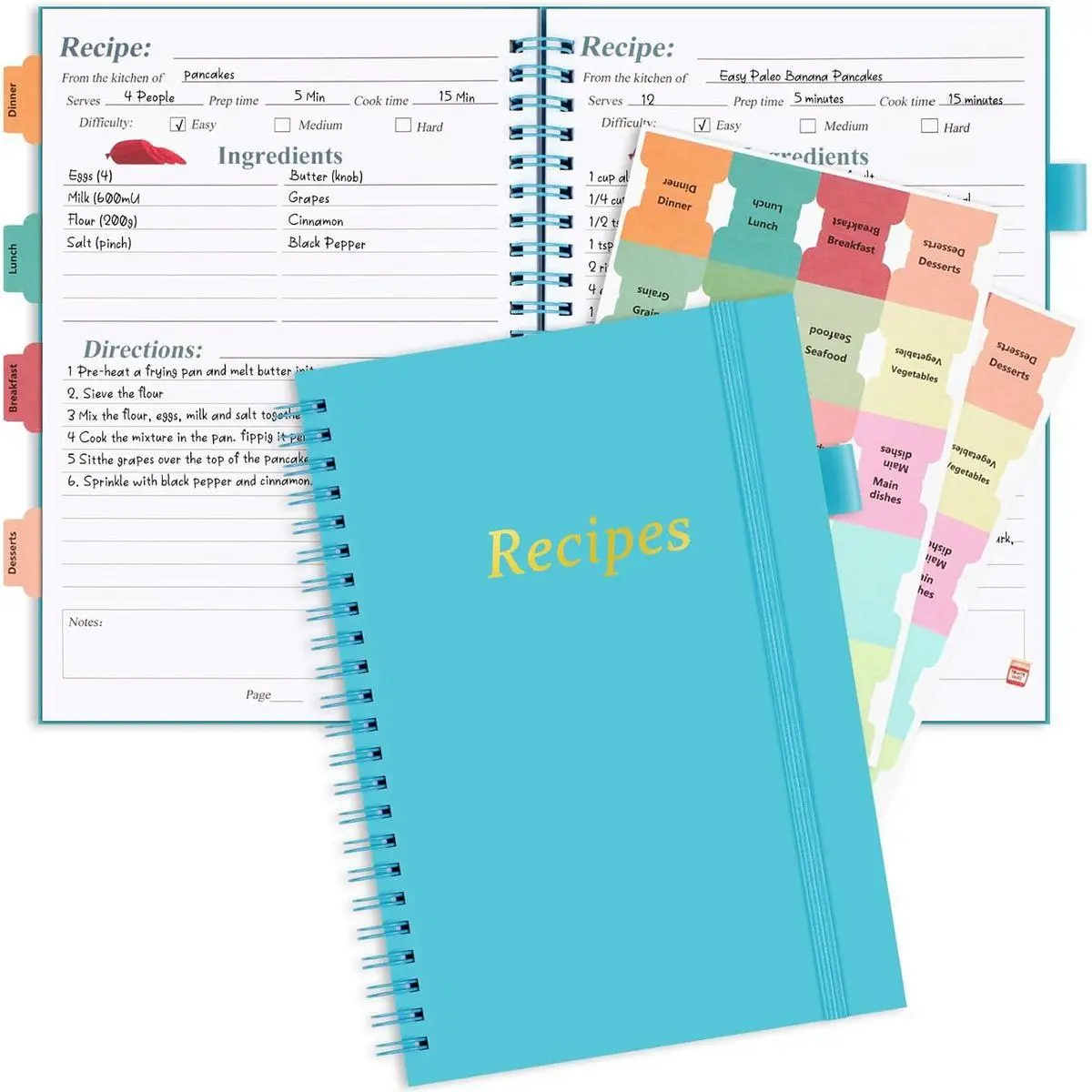 📘DURABLE & DIRT RESISTANT: Our recipe book is made of durable and waterproof PVC cover material, The recipe notebook not only ensures easy maintenance, But also Spills can be effortlessly wiped away without fear of damaging your precious recipes. Additionally, a sheet of colorful stickers and a table of contents make it a breeze to personalize and locate your desired recipes quickly.