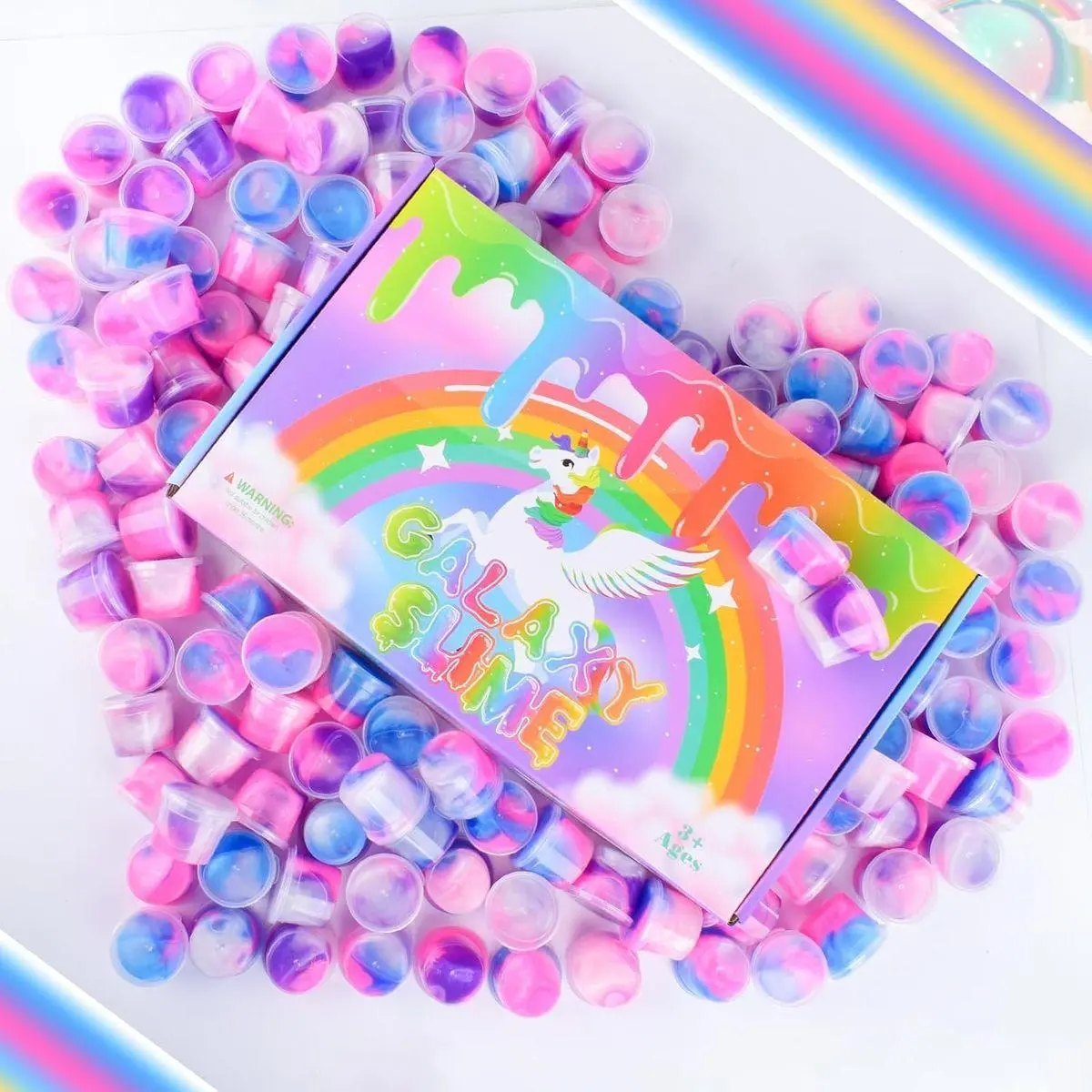 118 Pcs Slime Pack: Unicorn Galaxy Slime Set for Girls and Boys, Slime comes in 4 colors (pink, purple, blue, white) with a total of 118 packs of mini slime cups. Kids will love these cute slimes
