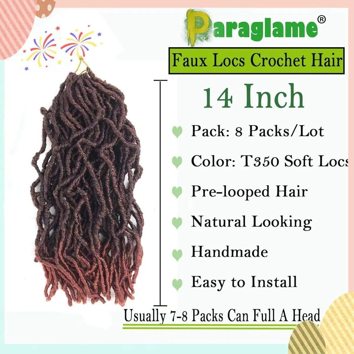 4.【New Faux Locs】: 6 Colors Available: 1B, 27, 30#, T30#, 350#, T350#, 8 Packs/Lot. 14 Inch Wrapping Hair for Soft Locs Crochet Hair 8 Packs .
