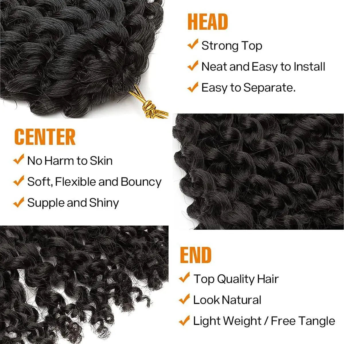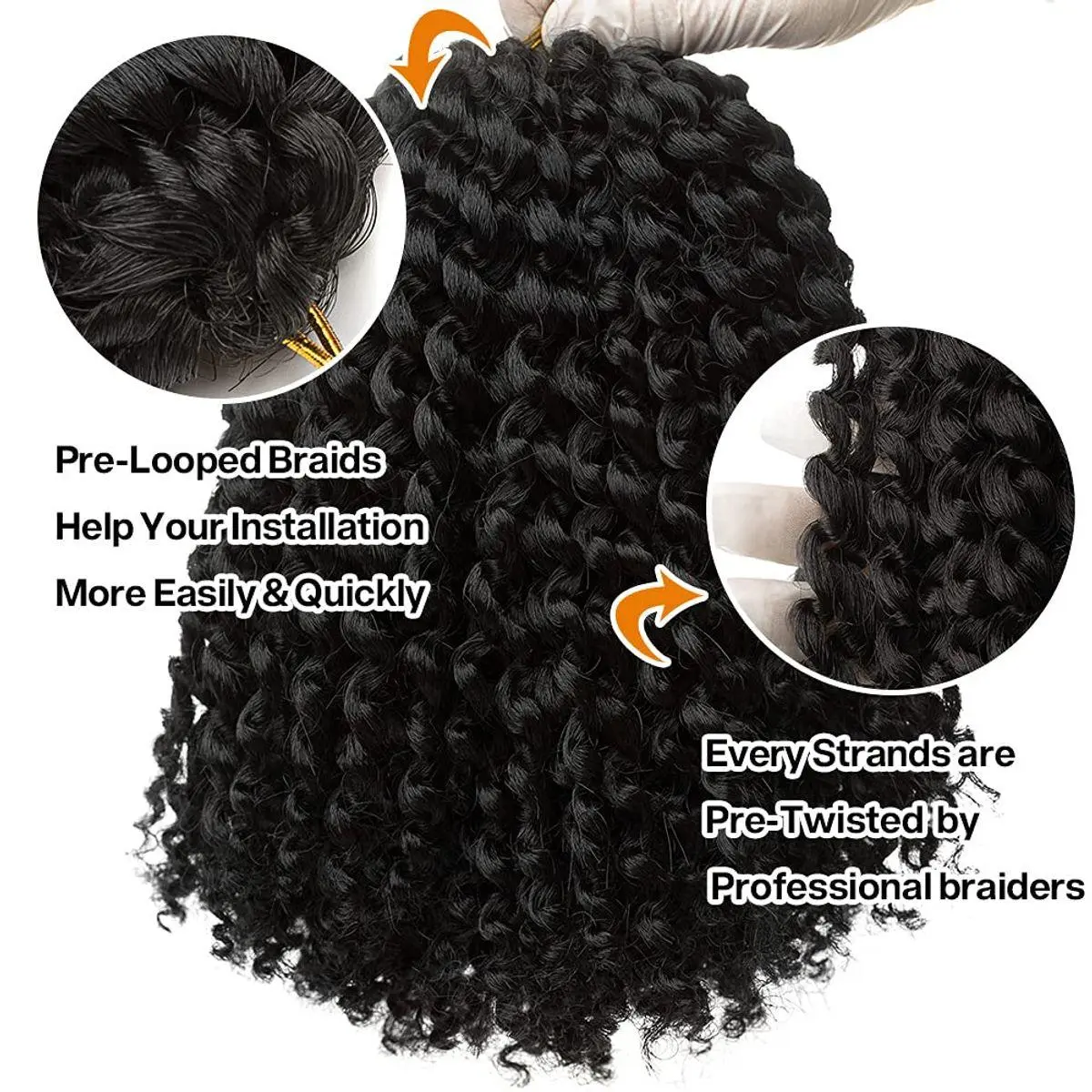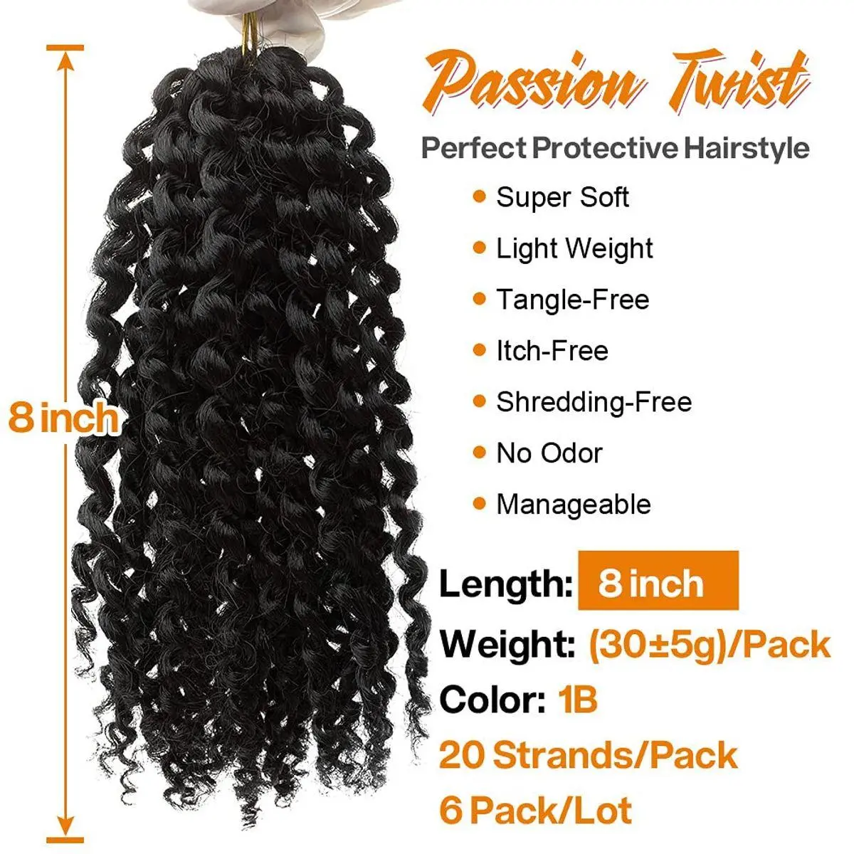Passion Twist Hair Water Wave Crochet Braids for Black Women 6 Packs 8 Inch Short Bohemian Curly Hair for Passion Twist Crochet Hair(8inch, 1B)