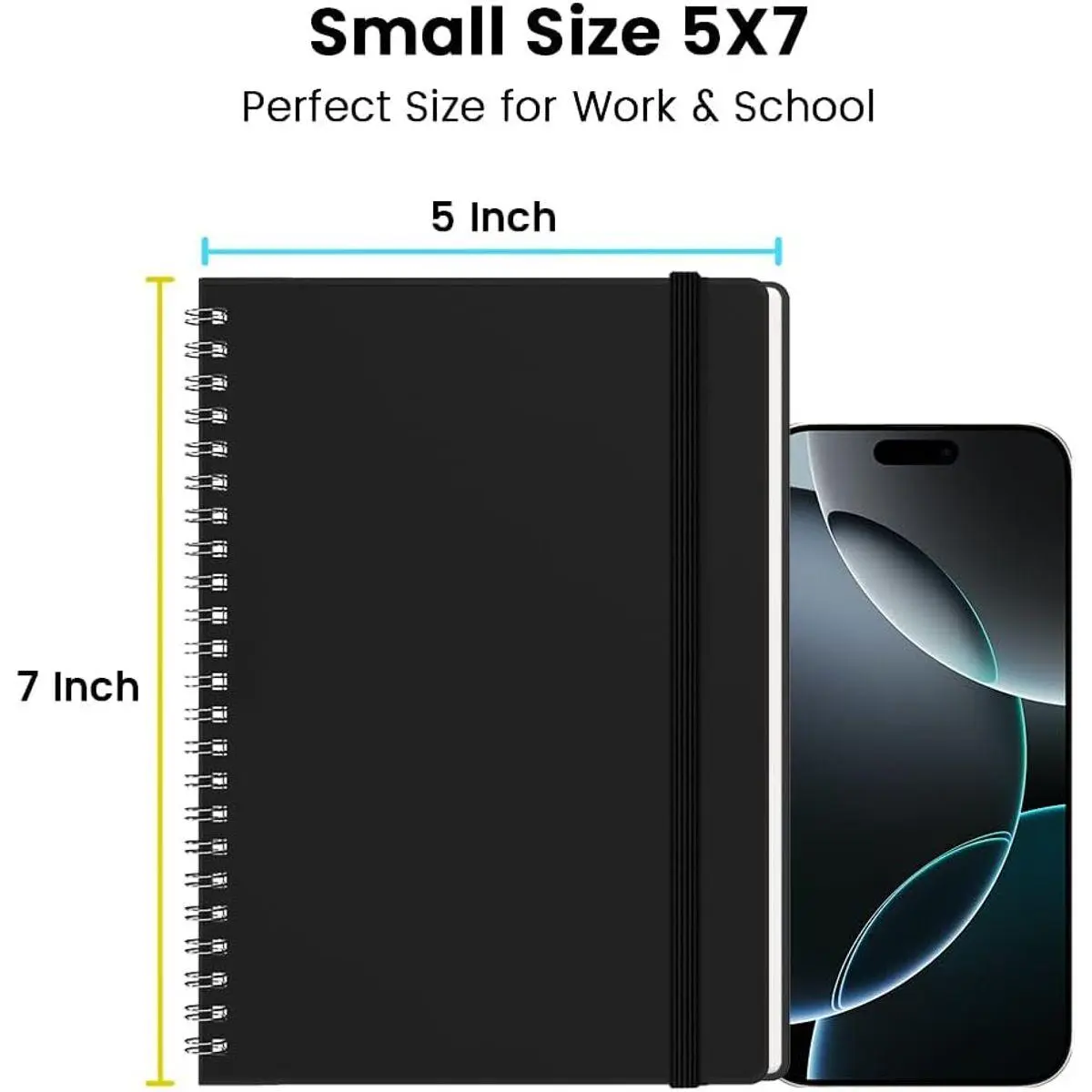 【Work & Travel-Friendly】Built with sturdy metal binding and water-resistant cover, this 5"x7" notebook features an elastic closure band for secure portability. Perfect as a work notebook, school notebook, or travel journal.