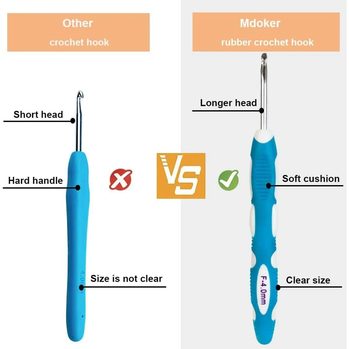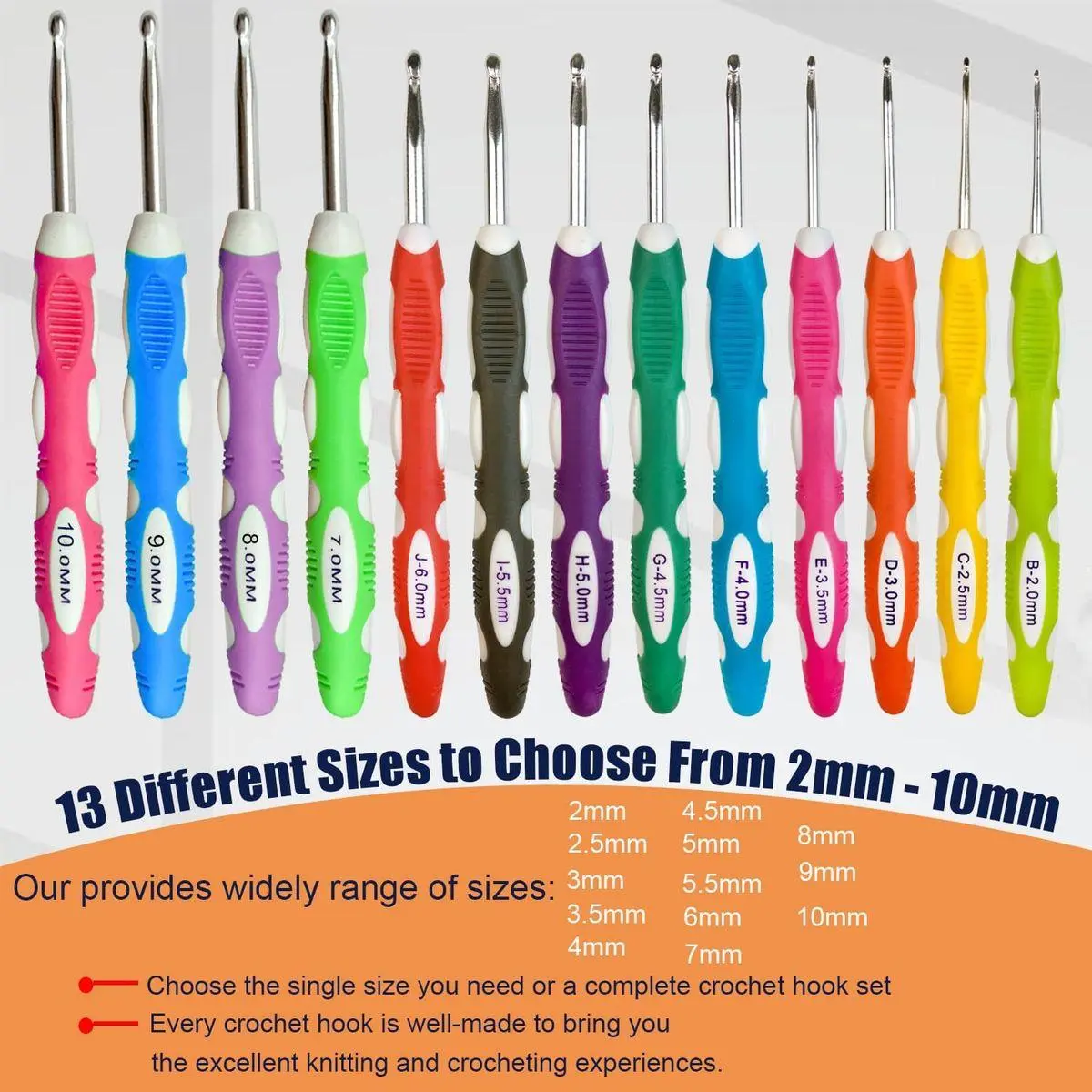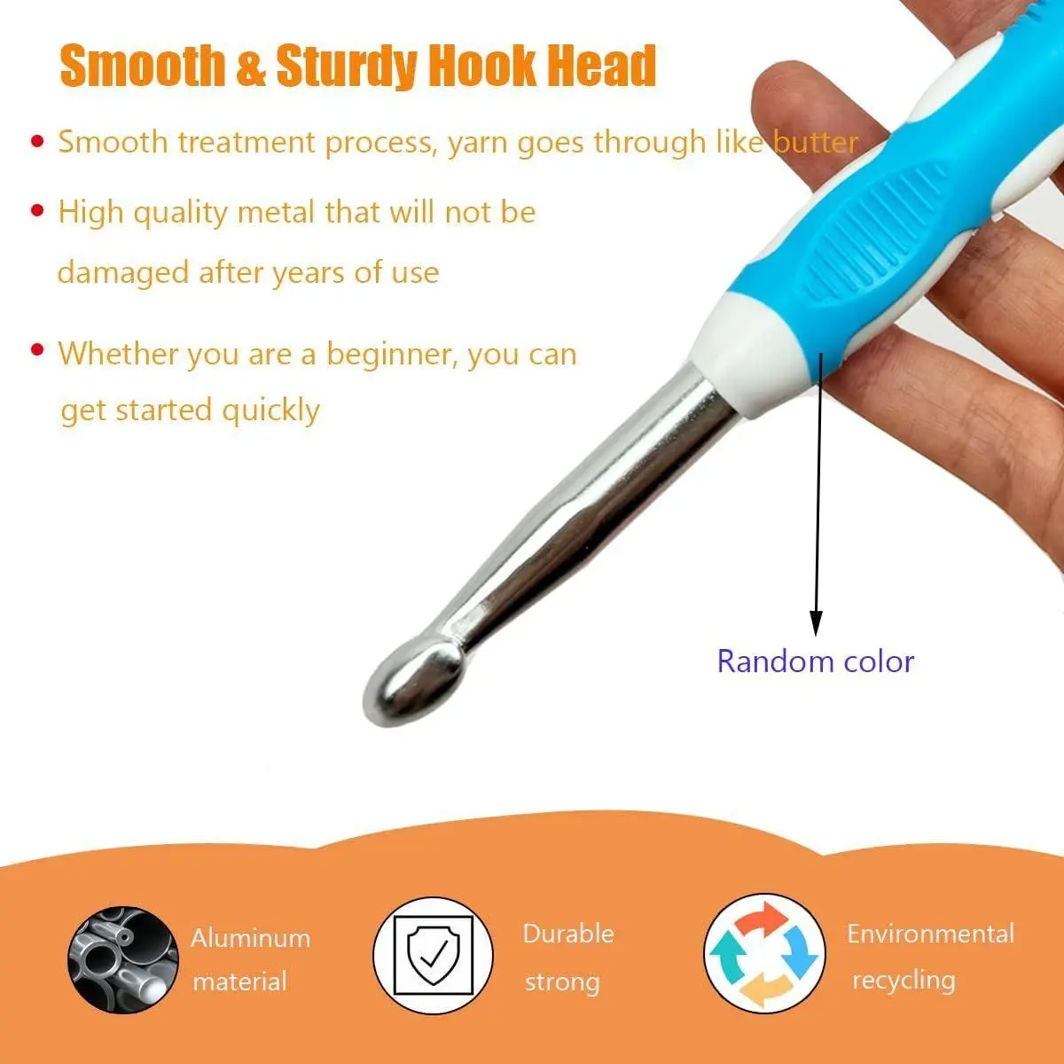 Enjoy Crocheting without Pain or Fatigue:Crochet hooks with comfortable easy grip handles,the cushioned will make crocheting a breeze.Less stress on joints and wrists enables you take on bigger projects.Perfect for Arthritis Hands.You can knit for a long time without pain in your hands