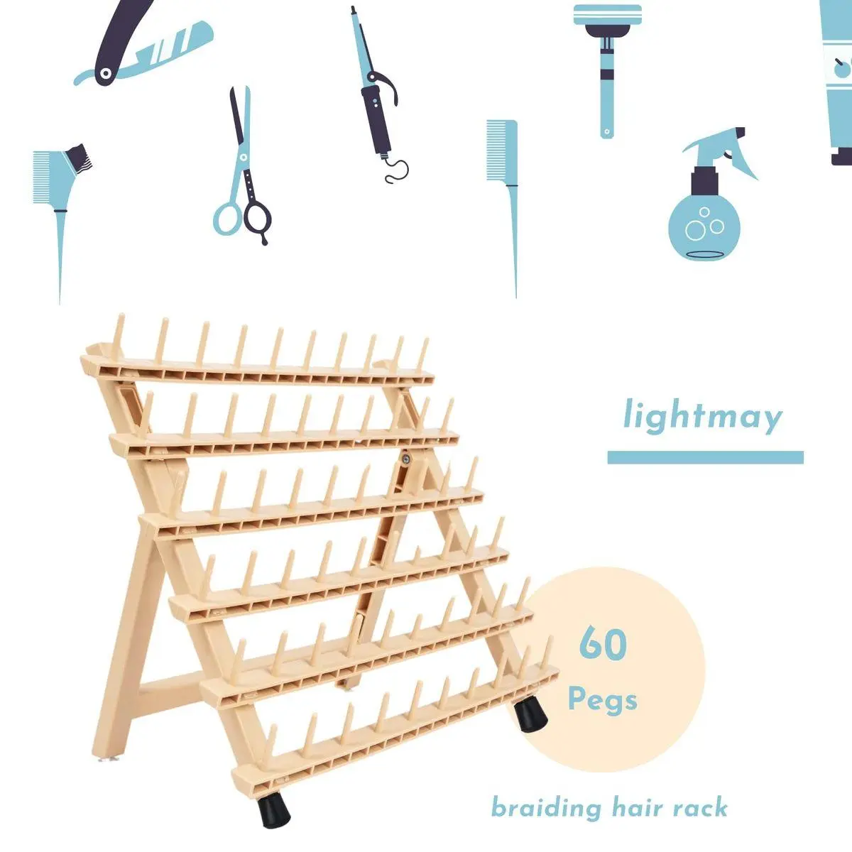 Braiding Hair Rack with 60 Pegs Standing Versatile Extension Hair Holder with 60 Spools - Ergonomic Braid Stand for Stylists - Time-Saving (wood)