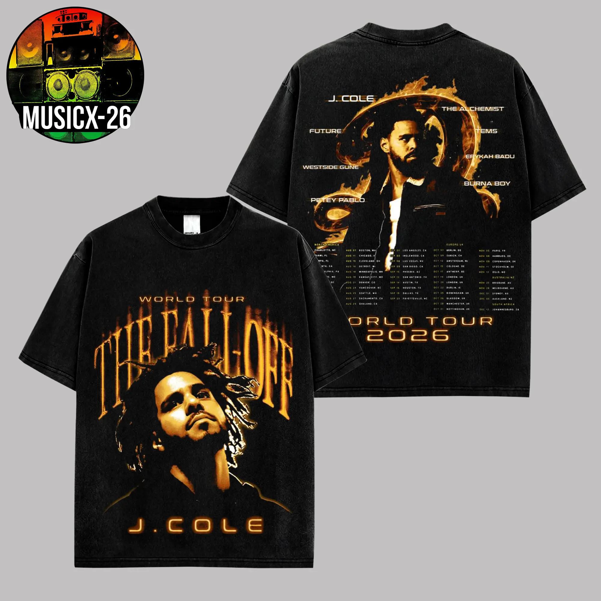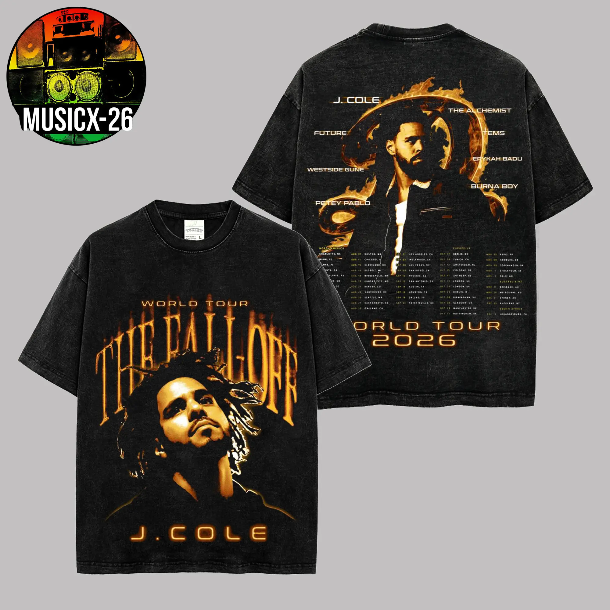 [X-26] J. Cole, The Fall-Off Tour 2026 Graphic For Dreamville High-quality Acid Washed Cotton T-Shirt, Disc 29, Disc 39 Hip-Hop Shirt, The Fall-Off Album Jermaine Lamar Cole Fan Graphic Tee, Cole World Music Fan Merch Shirt